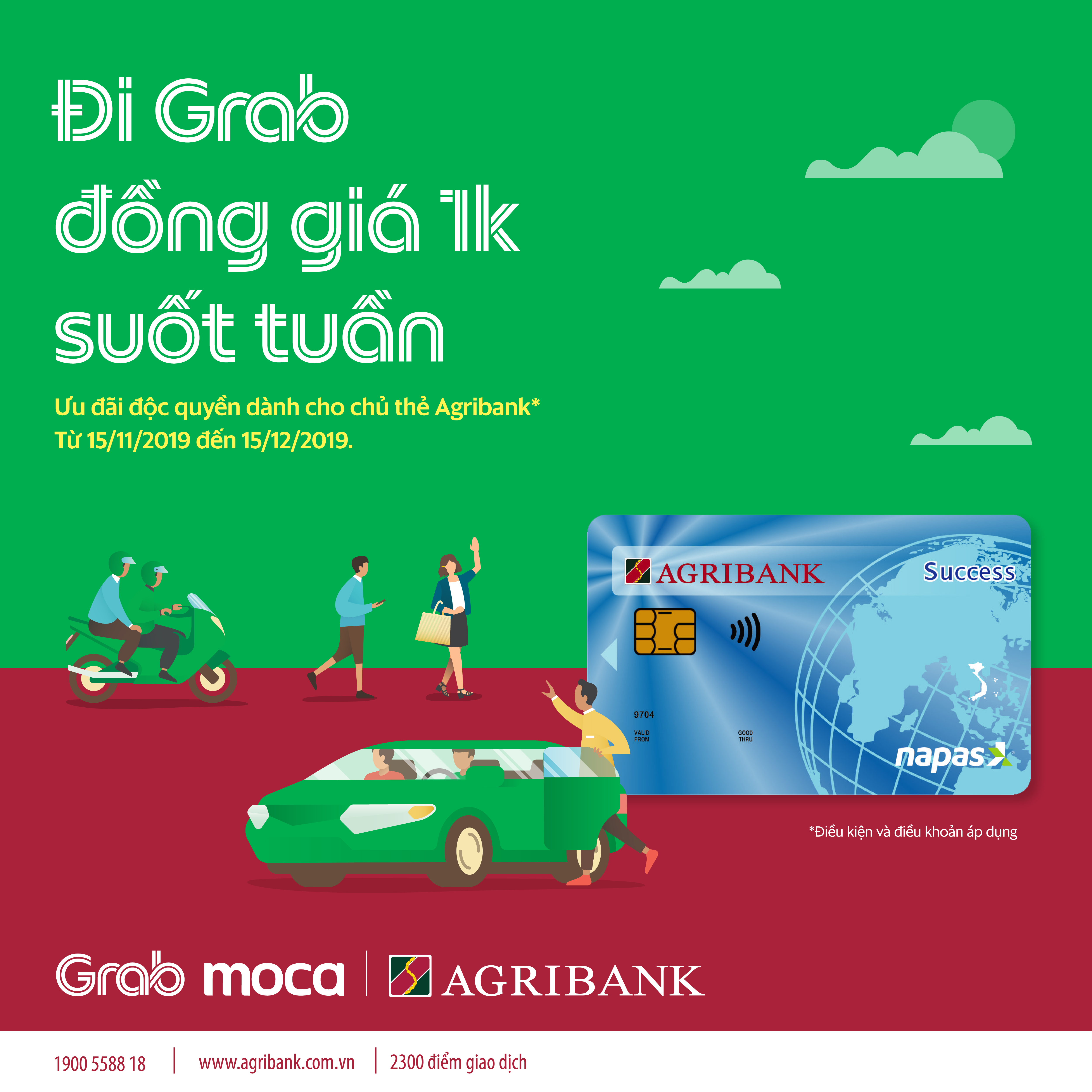 Để gia tăng tiện ích cũng như nâng cao trải nghiệm của khách hàng, Agribank phối hợp với Moca triển khai chương trình ưu đãi dành riêng cho chủ thẻ Agribank lần đầu kích hoạt Ví điện tử Moca trên ứng dụng Grab sẽ được sử dụng dịch vụ GrabCar/GrabBike đồng giá 1.000 đồng trong 01 tuần.