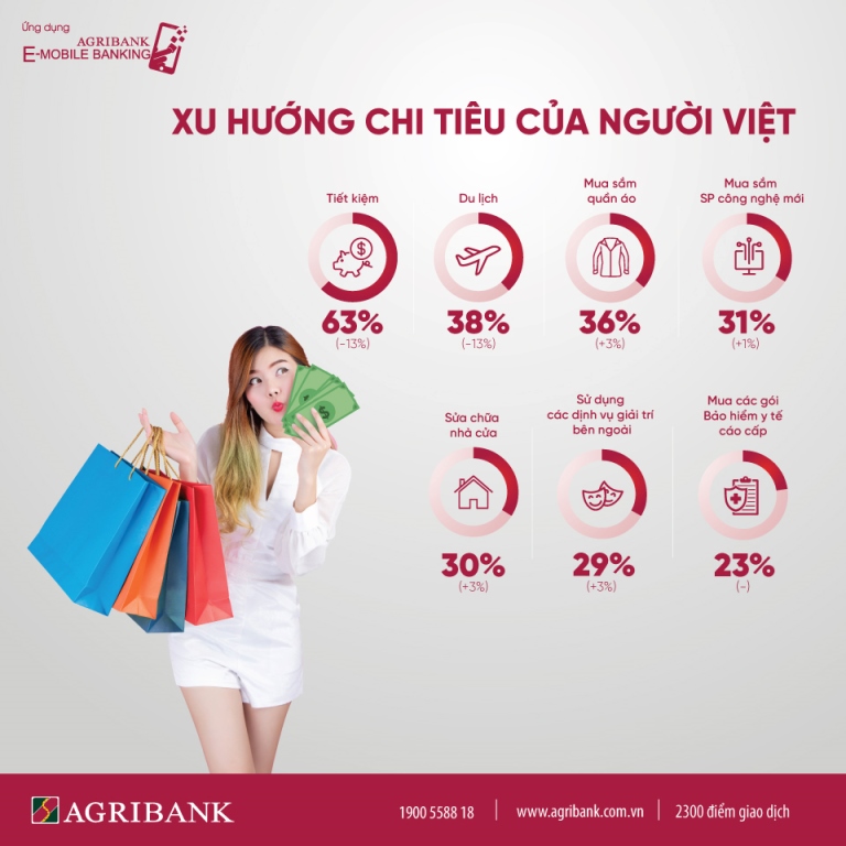 Theo khảo sát của Nielsen, người Việt sẵn sàng chi tiêu cho du lịch (38%), mua sắm quần áo mới (36%), các sản phẩm công nghệ mới (31%), sửa chữa nhà cửa (30%) và các dịch vụ giải trí bên ngoài (29%). Người Việt có hiểu biết về công nghệ, kĩ thuật số và đồng thời sẵn sàng chi tiêu rất cao để tận hưởng cuộc sống hiện đại. Nhờ vào sự phát triển mạnh mẽ của công nghệ, các dịch vụ ngân hàng số ra đời và đáp ứng nhanh chóng nhu cầu tiêu dùng khổng lồ này. Nhằm hướng đến “siêu ứng dụng” tạo nên một hệ sinh thái đa dịch vụ. Ứng dụng Agribank E-Mobile Banking đã triển khai các giải pháp thanh toán thông minh phục vụ nhiều nhu cầu của khách hàng trên nhiều lĩnh vực khác nhau như: chuyển khoản, thanh toán hóa đơn, nạp tiền điện thoại, đặt vé tàu, xe, đặt phòng khách sạn…