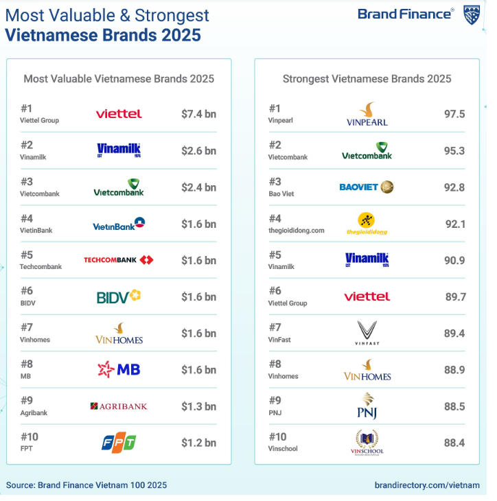 According to the Vietnam 100 – Top 100 Most Valuable Brands in Vietnam 2025 report published by Brand Finance, Agribank continues to secure a place in the Top 10, with a brand value of USD 1.3 billion. This achievement makes Agribank one of the few state-owned commercial banks that consistently maintains its presence among leading brands, outperforming many major corporations in real estate, technology, and consumer goods.
