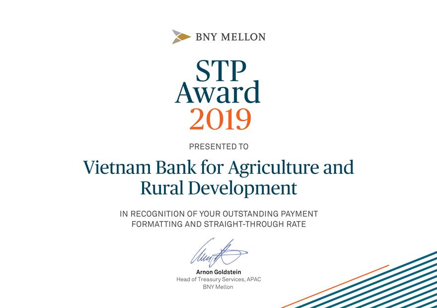 Agribank received the STP award 2019 from The Bank of New York Mellon