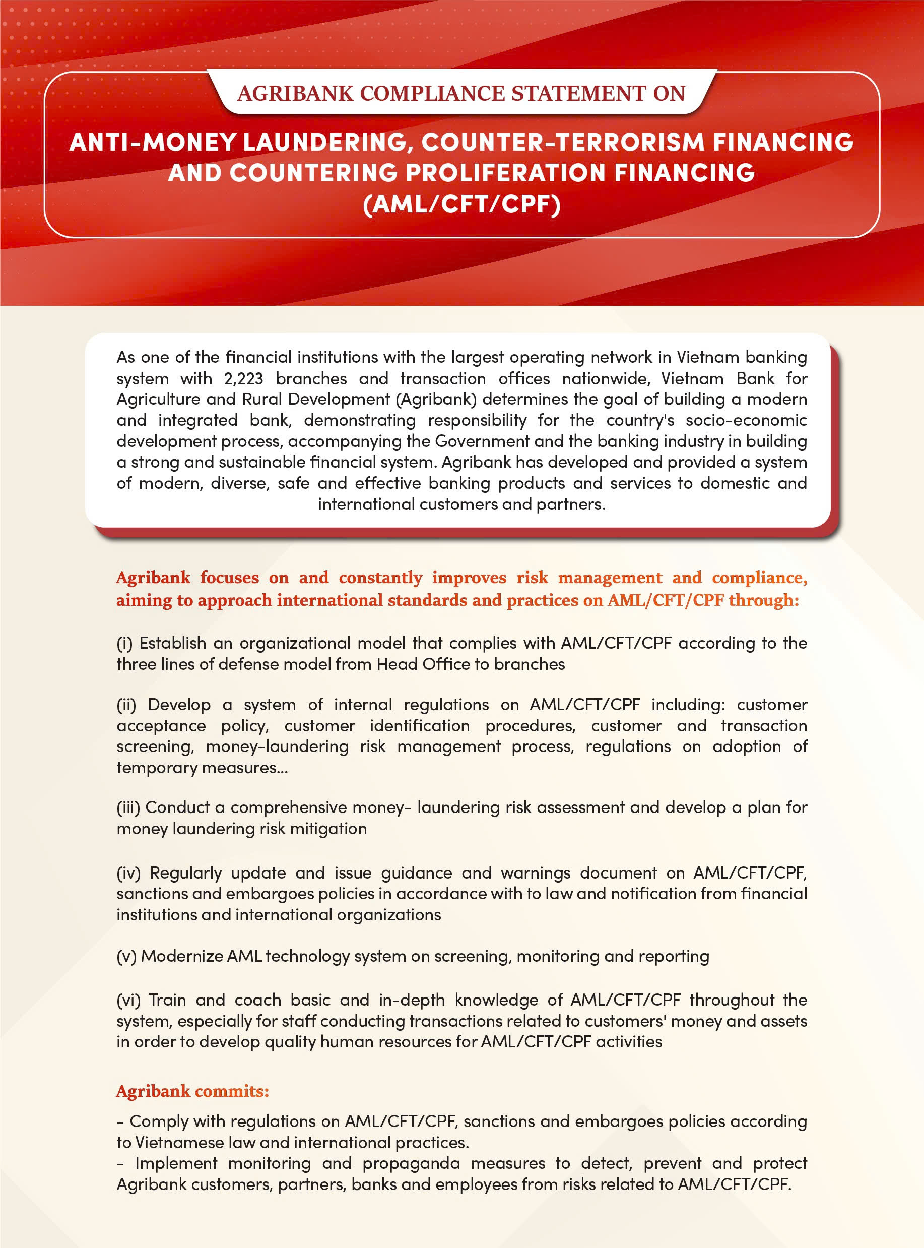 - Agribank compliance statement on anti-money laundering, counter-terrorism financing and countering proliferation financing (AML/CFT/CPF)