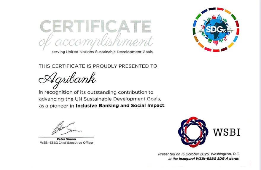 - Agribank honored with the WSBI-ESBG SDG Award 2025
