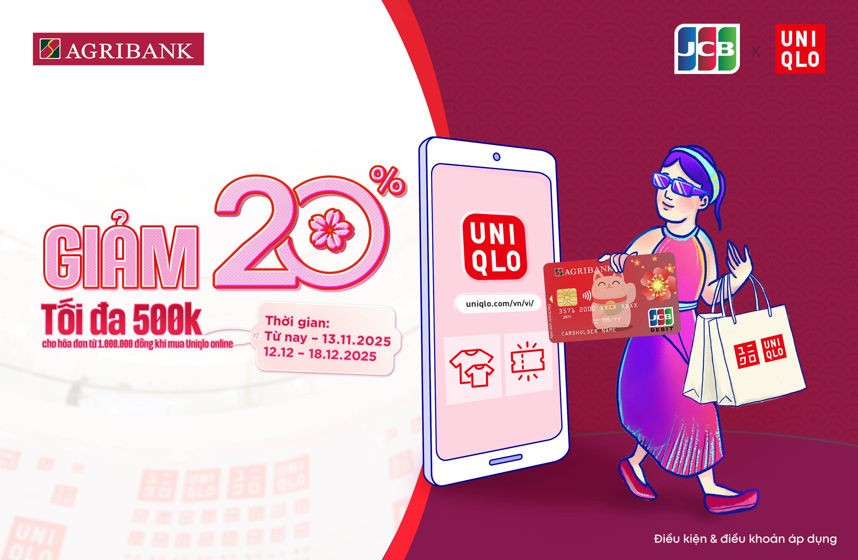 4. Đối tượng khuyến mại: Chủ thẻ Agribank JCB thanh toán hóa đơn tại UNIQLO (online hoặc trực tiếp tại cửa hàng).