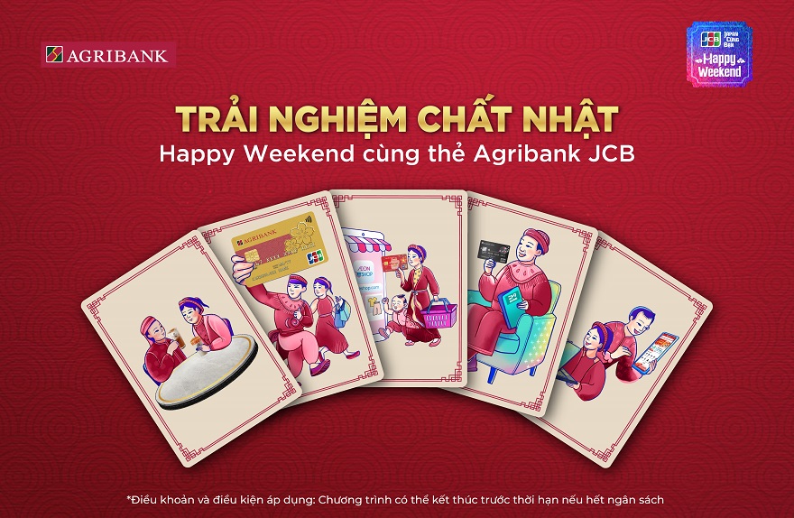 Cuối tuần là khoảng thời gian để nghỉ ngơi, tận hưởng và gắn kết bên gia đình, người thân. Với chương trình Happy Weekend cùng Agribank, mỗi cuối tuần sẽ trở nên ý nghĩa hơn khi bạn thoải mái mua sắm, trải nghiệm ẩm thực và tận hưởng cuộc sống với nhiều ưu đãi hấp dẫn dành riêng cho chủ thẻ quốc tế Agribank JCB.