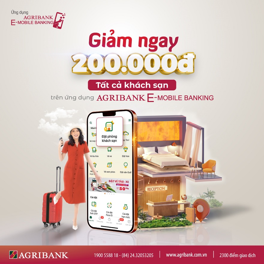 Giảm ngay 200.000đ cho tất cả khách sạn trên ứng dụng Agribank E-Mobile Banking