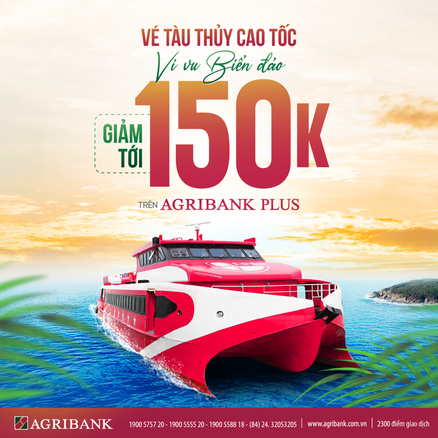 Du lịch biển đảo hè này cực đã với chi phí cực tiết kiệm khi đặt vé tàu thủy trên Agribank Plus, khách hàng hưởng ngay ưu đãi giảm 20%, tối đa 150.000 đồng.