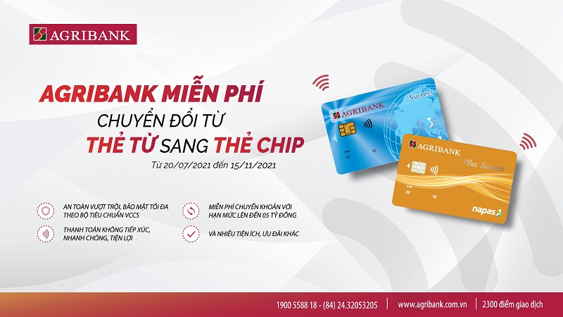 Từ ngày 20/07/2021 đến ngày 30/09/2021, Agribank đã triển khai chương trình miễn phí chuyển đổi thẻ từ sang thẻ chip đối với các chủ thẻ ghi nợ nội địa của Agribank và được đông đảo khách hàng hưởng ứng chuyển đổi. Cụ thể, số lượng thẻ chip phát hành trong thời gian ưu đãi đạt 1,2 triệu thẻ, tăng 200% so với thời điểm chưa triển khai miễn phí.