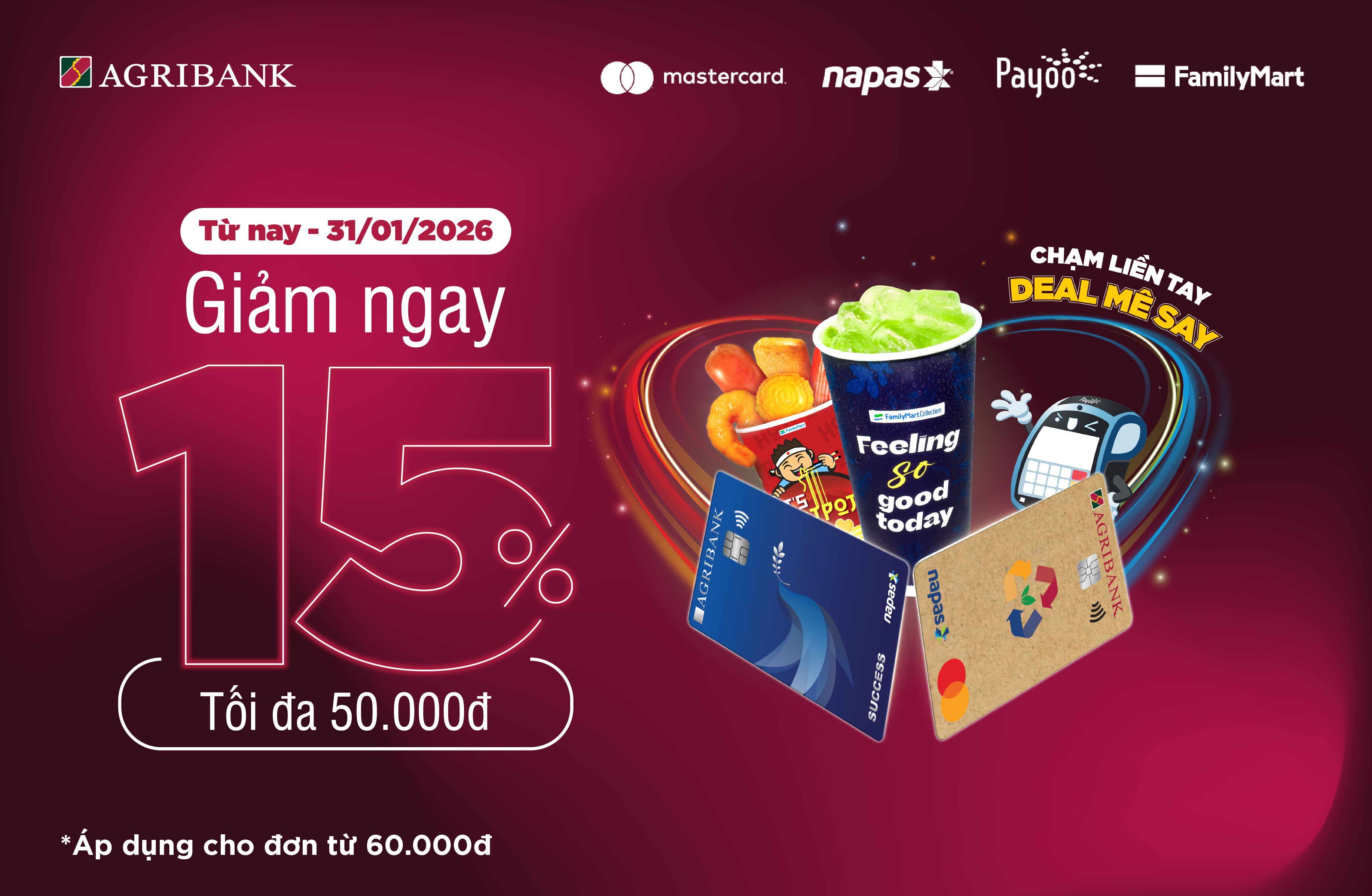 1. Nội dung khuyến mại: Khách hàng sẽ được giảm ngay 15% tối đa 50.000 VND cho hóa đơn từ 50.000 VND khi thanh toán chạm thẻ Agribank trên Payoo POS tại các cửa hàng thuộc hệ thống Ministop.