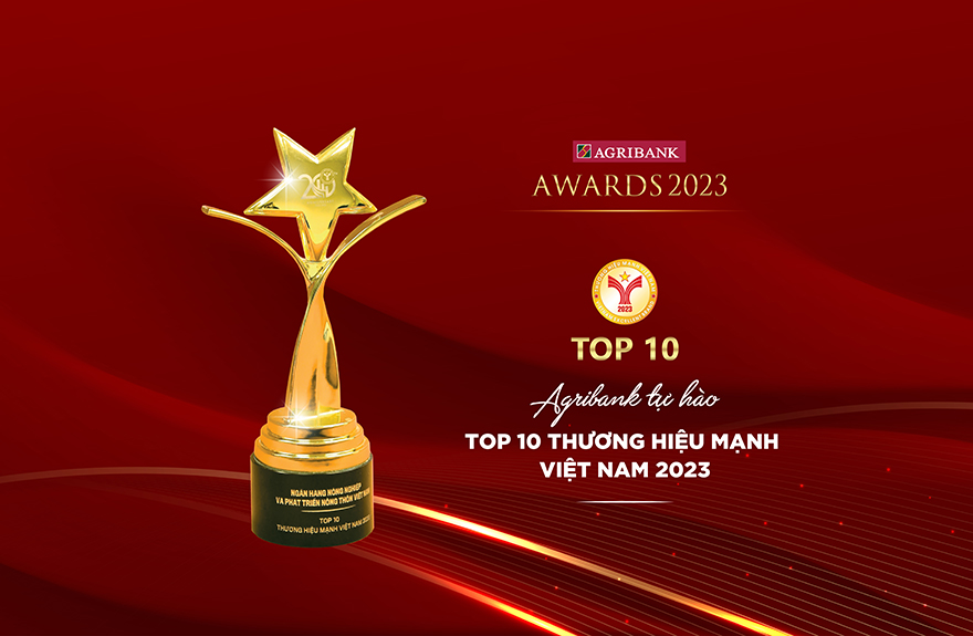 Danh hiệu Top 10 Thương hiệu mạnh Việt Nam 2023 một lần nữa khẳng định vị thế, uy tín của Agribank ngân hàng thương mại Nhà nước hàng đầu, đóng vai trò chủ lực trong đầu tư phát triển “Tam nông” và nền kinh tế.