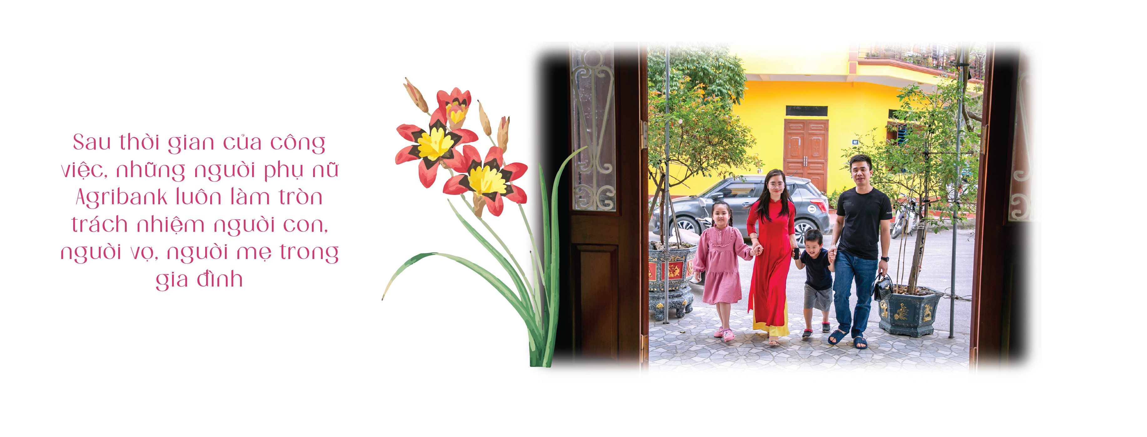 Đi đôi với việc phấn đấu hoàn thành tốt nhiệm vụ cơ quan, đơn vị giao phó, nữ cán bộ Agribank luôn làm tròn nghĩa vụ, trách nhiệm, bổn phận của người con, người vợ, người mẹ trong mỗi gia đình. Do đặc thù và tính chất công việc Ngân hàng, nhiều chị em phụ nữ thường xuyên phải đi làm sớm và về muộn, phải đi công tác xa, dài ngày, nhưng các chị em vẫn hoàn thành tốt nhiệm vụ, thu xếp công việc nhà khoa học, hợp lý; chăm lo xây dựng giữ gìn và bảo vệ gia đình, nuôi con khỏe dạy con ngoan, xây dựng gia đình “No ấm, bình đẳng, tiến bộ, hạnh phúc”. Với công lao chăm sóc, lo toàn gia đình của những người cha, người mẹ, năm học 2022-2023, hệ thống Agribank có 457 cháu con em cán bộ đạt giải cấp tỉnh, thành, quốc gia, quốc tế, được Công đoàn Agribank biểu dương, khen thưởng.