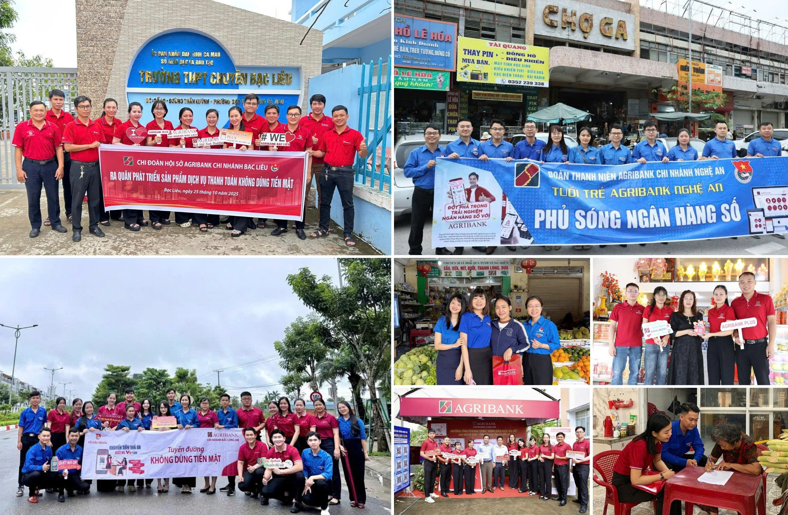 Phát huy hiệu quả phương châm “Vận dụng kiến thức chuyên môn, nghiệp vụ vào hoạt động tình nguyện”, Đoàn Thanh niên Agribank đã triển khai hàng trăm chiến dịch cộng đồng bám sát chủ trương “3 liên kết”. Các hoạt động trọng tâm như “Thanh toán không dùng tiền mặt”, “Phủ sóng VietQR”, “Chợ không tiền mặt” hay “Bình dân học vụ số”,… góp phần thiết thực trong xây dựng nông thôn mới và đô thị văn minh. Chuỗi điểm chạm chuyển đổi số này tạo nguồn khách hàng mới, gia tăng tần suất giao dịch điện tử và đóng góp thực chất vào tăng trưởng dịch vụ, các mục tiêu phát triển bền vững và tiêu chí ESG của hệ thống, qua đó giúp toàn đơn vị có thêm dư địa để tăng tốc về đích và hoàn thành xuất sắc nhiệm vụ kinh doanh cuối năm.