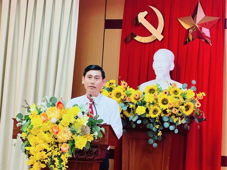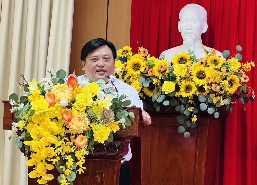 Ông Phan Văn Bá - Phó Trưởng Văn phòng Đại diện Agribank khu vực Tây Nam Bộ phát biểu tại hội nghị