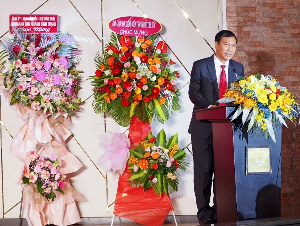 Ông Nguyễn Đình Huấn, Giám đốc Agribank Chi nhánh Bình Thạnh đọc diễn văn kỷ niệm ngày thành lập và phát biểu tri ân khách hàng