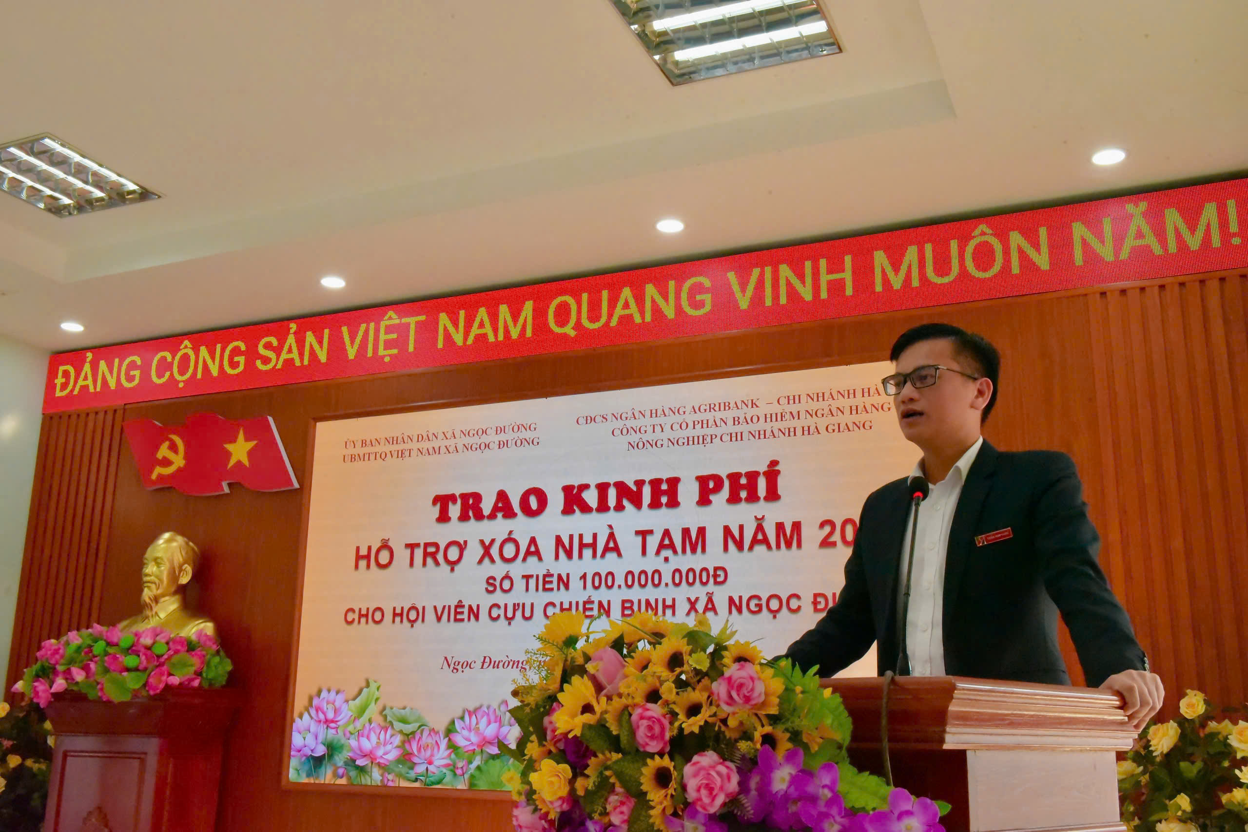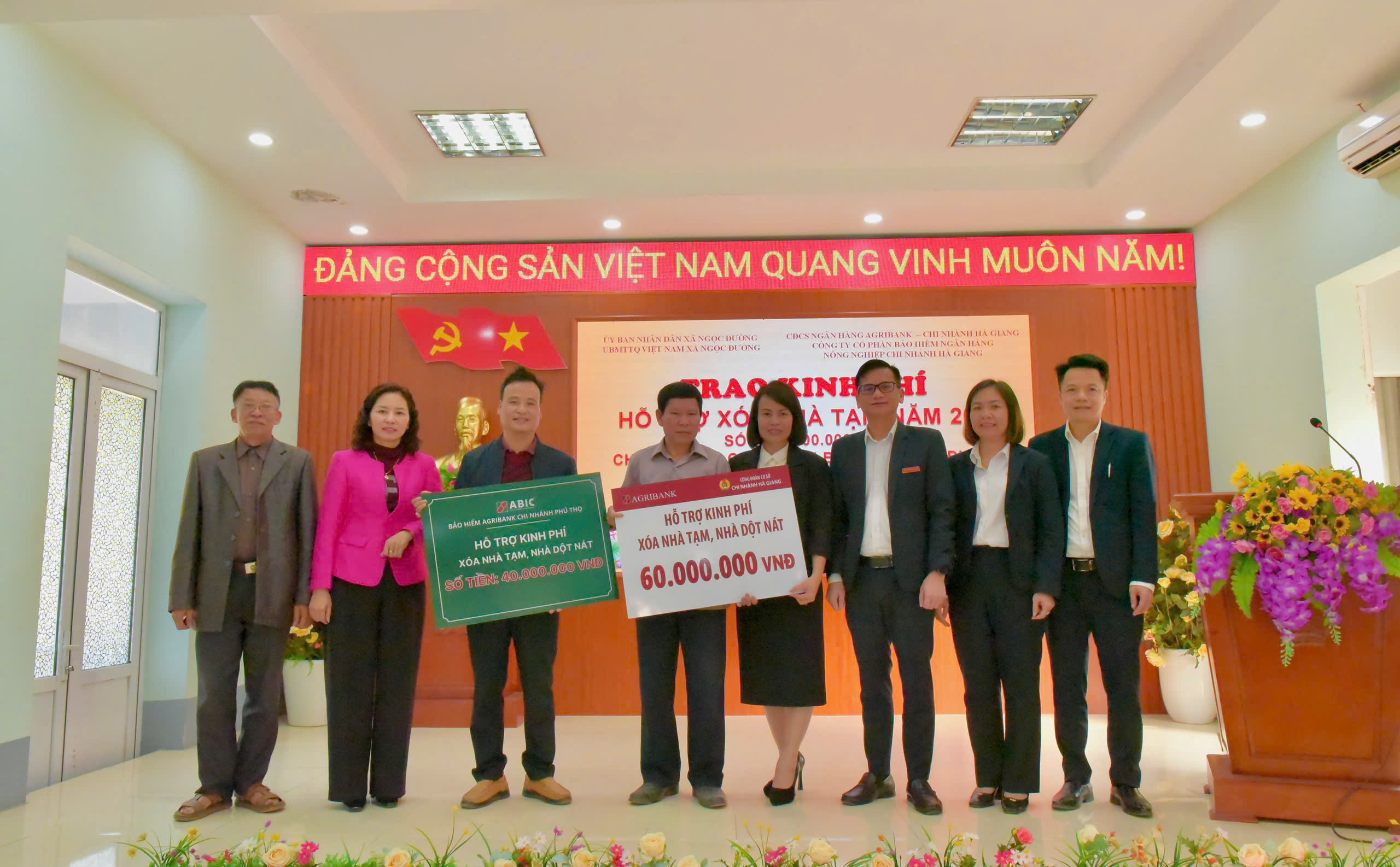 Hưởng ứng chương trình hỗ trợ xóa nhà tạm, nhà dột nát của tỉnh Tuyên Quang và tiếp tục phát huy vai trò tiên phong trong công tác an sinh xã hội, ngày 2/12, Agribank Chi nhánh Hà Giang phối hợp cùng Công ty Bảo hiểm Agribank (ABIC) Chi nhánh Phú Thọ đã tổ chức trao kinh phí hỗ trợ xây dựng nhà ở cho hội viên cựu chiến binh Nguyễn Xuân Luận (trú tại thôn Bản Tùy, xã Ngọc Đường). Đây là hoạt động thiết thực nhằm góp phần cải thiện điều kiện sống cho người dân còn khó khăn, đồng thời thể hiện tinh thần trách nhiệm cộng đồng của hệ thống Agribank tại địa bàn miền núi phía Bắc.