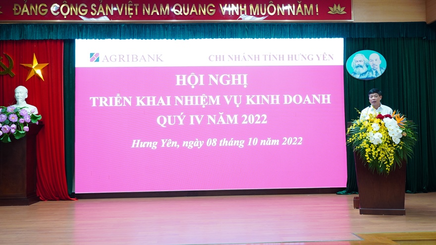 Ngày 08/10/2022, Agribank tỉnh Hưng Yên tổ chức hội nghị tổng kết 9 tháng đầu năm và triển khai nhiệm vụ kinh doanh 3 tháng cuối năm 2022. Tham dự và chỉ đạo Hội nghị có đồng chí Vũ Thanh Liêm - Bí thư Đảng bộ, Giám đốc Agribank tỉnh Hưng Yên; các đồng chí trong Ban giám đốc, Trưởng, phó phòng Nghiệp vụ Hội sở NHNo tỉnh; Giám đốc, Phó giám đốc Agribank chi nhánh loại II; Trưởng, phó phòng nghiệp vụ và Giám đốc, Phó giám đốc Phòng giao dịch trực thuộc.