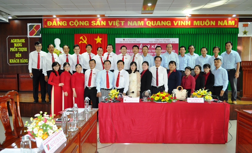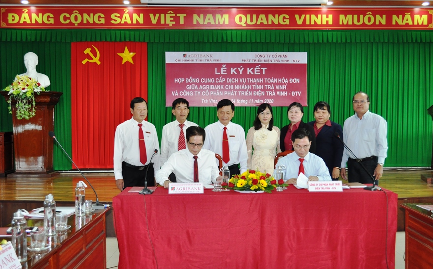 Để triển khai thực hiện tốt chỉ thị số 22/CT-TTg ngày 26/05/2000 của Thủ tướng Chính phủ “Về đẩy mạnh triển khai các giải pháp phát triển nhanh thanh toán không dùng tiền mặt tại Việt Nam”, văn bản số 3222/UBND-KT ngày 14/08/2020 của Chủ tịch Ủy ban Nhân dân tỉnh Trà Vinh, các văn bản chỉ đạo của Ngân hàng Nhà nước và của Agribank… về thanh toán điện tử trong lĩnh vực dịch vụ công, nhất là các dịch vụ thanh toán hóa đơn tiền điện, nước, học phí, truyền hình cable, tiền điện thoại, học phí... ngày 24/11/2020 vừa qua, Agribank Trà Vinh tổ chức Lễ ký kết Thỏa thuận hợp tác với Công ty Phát triển Điện Trà Vinh “về việc thanh toán hóa đơn tiền điện qua hệ thống Agribank trên địa bàn tỉnh Trà Vinh”.