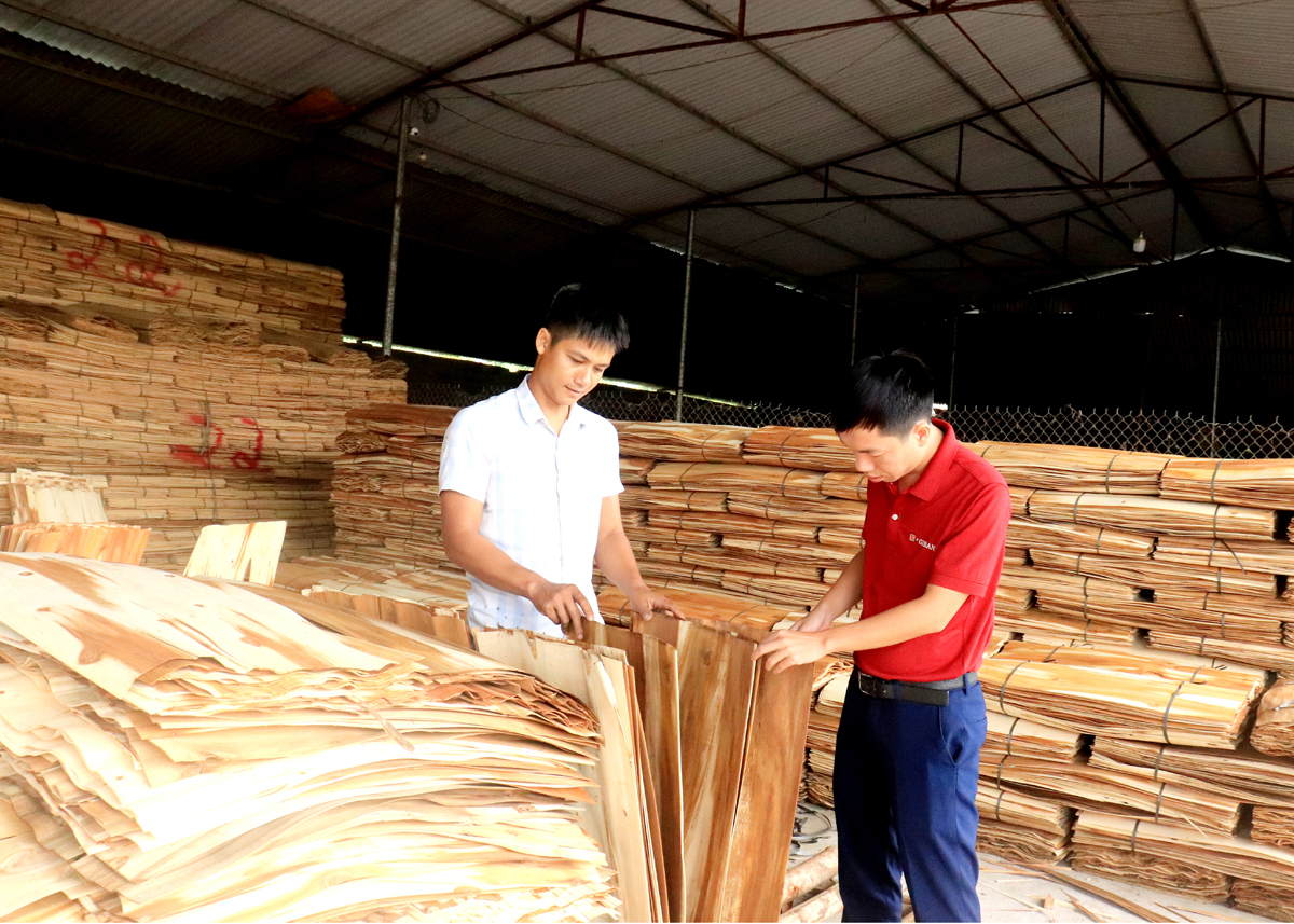 Nguồn vốn ưu đãi của Phòng giao dịch Agribank Vĩnh Tuy giúp anh Nguyễn Trung Hiếu mở rộng quy mô xưởng sản xuất ván bóc.