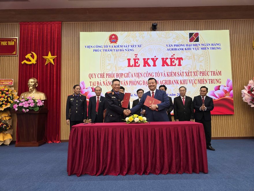 Chiều ngày 22/10/2025, tại thành phố Đà Nẵng đã diễn ra Lễ ký kết Quy chế phối hợp giữa Văn phòng đại diện Agribank khu vực miền Trung (VPMT) và Viện Công tố và Kiểm sát xét xử phúc thẩm tại Đà Nẵng. Sự kiện có ý nghĩa quan trọng trong việc xây dựng môi trường pháp lý ngày càng hoàn thiện, đóng góp vào sự nghiệp phát triển kinh tế - xã hội của đất nước.
