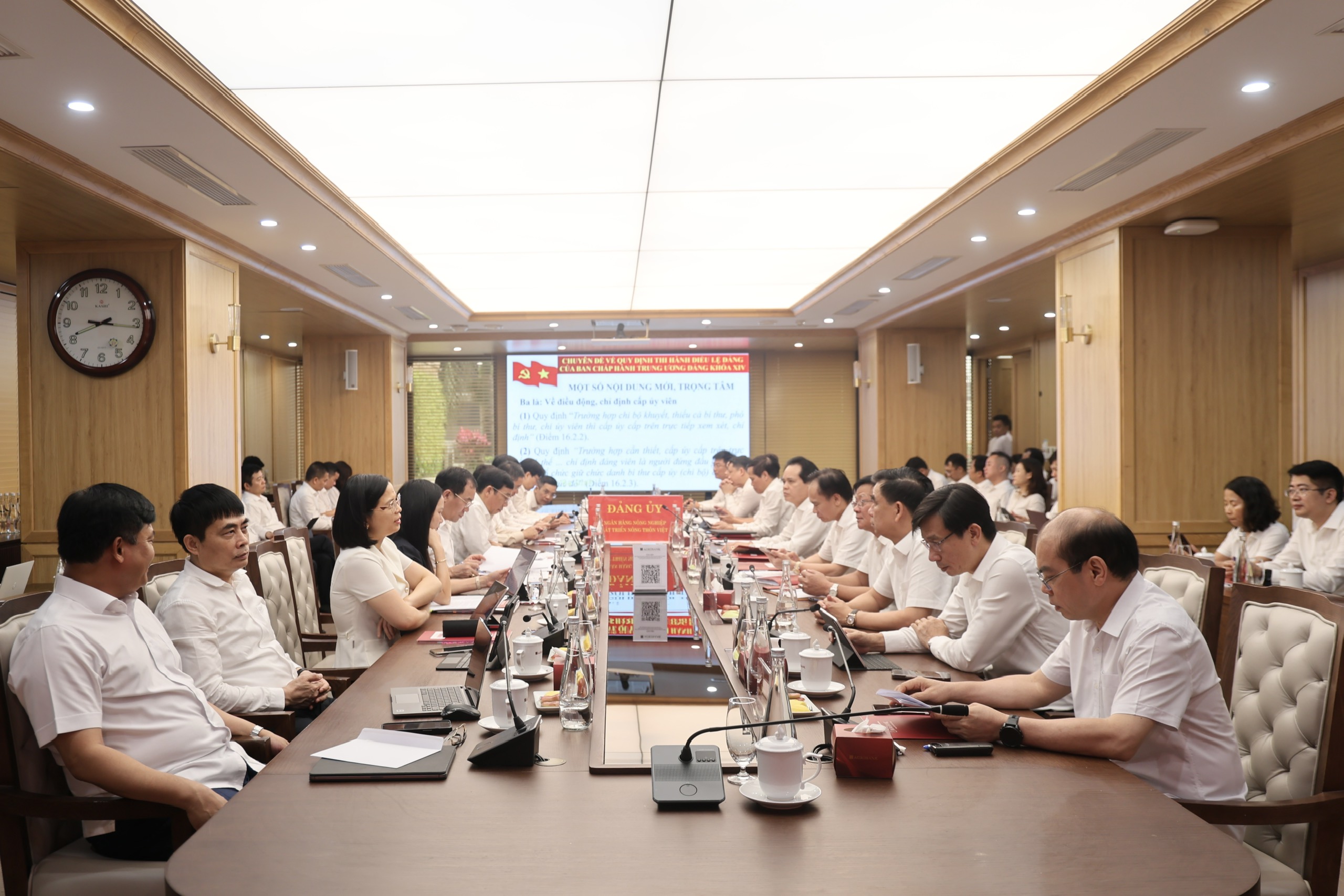Tại điểm cầu của Đảng ủy Agribank có đồng chí Trần Văn Thịnh - Phó Bí thư Thường trực Đảng ủy; đồng chí Phạm Toàn Vượng - Phó Bí thư Đảng ủy, Thành viên Hội đồng thành viên, Tổng Giám đốc; các đồng chí Ủy viên Ban Thường vụ, Ủy viên Ban Chấp hành Đảng bộ; các đồng chí Ủy viên Ủy ban Kiểm tra Đảng ủy; lãnh đạo các cơ quan tham mưu, giúp việc Đảng ủy; Chủ tịch Công đoàn, Bí thư Đoàn Thanh niên Agribank cùng đại diện cấp ủy các chi bộ, đảng bộ trực thuộc tại Trụ sở chính.