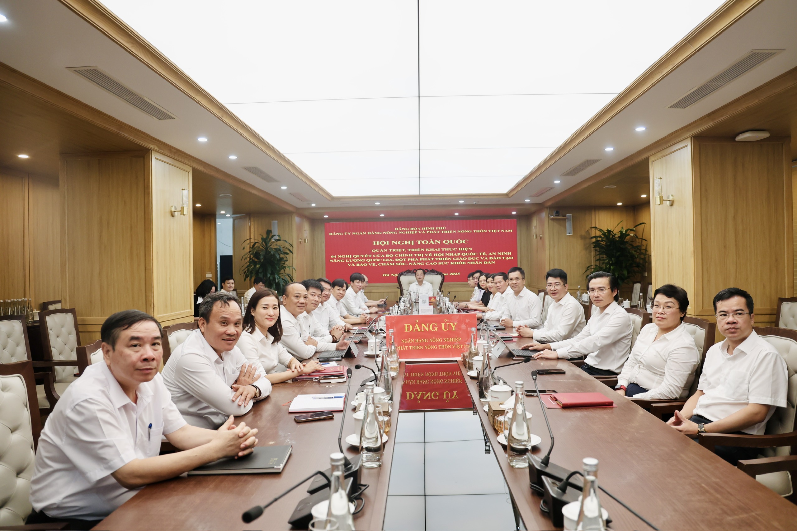 Sáng ngày 16/9/2025, Đảng ủy Agribank tham dự Hội nghị toàn quốc quán triệt, triển khai thực hiện 4 Nghị quyết của Bộ Chính trị về hội nhập quốc tế, an ninh năng lượng quốc gia, đột phá phát triển giáo dục và đào tạo và bảo vệ, chăm sóc, nâng cao sức khỏe nhân dân do Bộ Chính trị, Ban Bí thư tổ chức. Hội nghị được tổ chức trực tiếp từ Hội trường Diên Hồng - Nhà Quốc hội và kết nối trực tuyến với các điểm cầu trên cả nước với hơn 1,2 triệu đại biểu tham dự tại các ban, bộ, ngành, địa phương, đơn vị trên toàn quốc. Đây là sự kiện chính trị có ý nghĩa đặc biệt quan trọng, thể hiện quyết tâm của toàn Đảng trong việc nhanh chóng đưa những Nghị quyết lớn của Trung ương vào cuộc sống, tạo bước đột phá mới trên các lĩnh vực then chốt của đất nước.