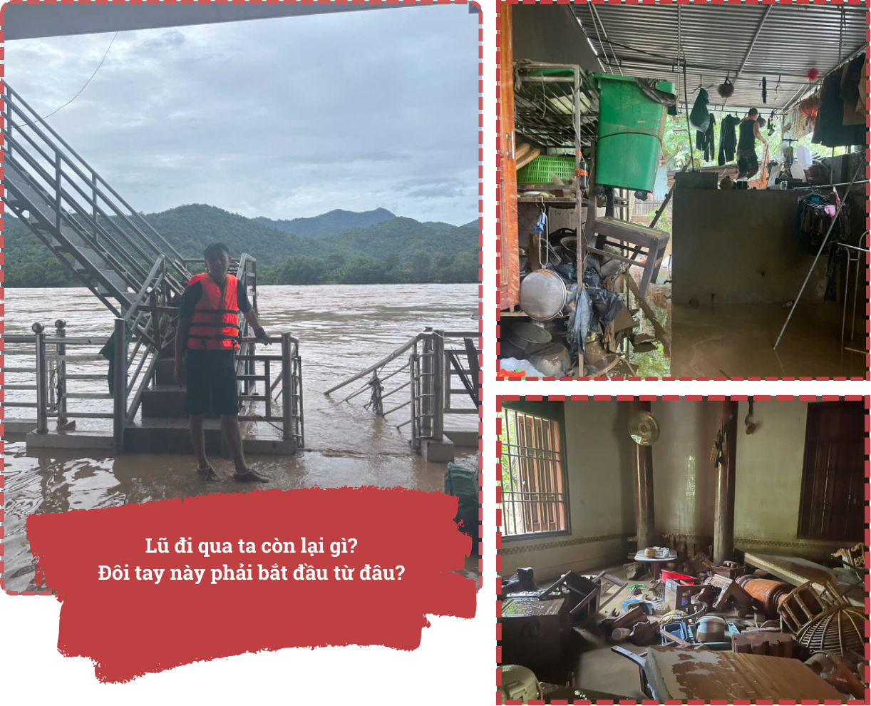 “Nhắc lại mà mắt đỏ hoe… Tài sản lớn nhất là chiếc ô tô cũng theo dòng nước mà đi. Đồ đạc hỏng nhiều, nhưng may là người không ai sao cả.” Anh ngập ngừng một lát rồi nói: “Cái khó nhất là thấy bà con mất trắng. Mình là cán bộ ngân hàng mà cũng bất lực.”