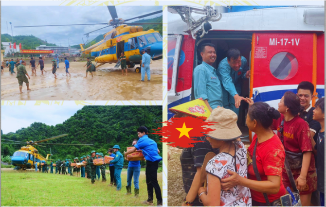 Nhiều điểm bản bị cô lập hoàn toàn do cầu sập, đường chia cắt. Trước tình hình đó, lực lượng Quân đội đã huy động cả máy bay trực thăng để thả hàng cứu trợ xuống các bản bị cô lập. Những chiếc trực thăng cứu trợ bay lướt qua những đỉnh núi mây phủ, thả từng kiện hàng xuống các bản, mang theo sự sống và hy vọng đến với những nơi bị chia cắt hoàn toàn. Tinh thần “quân - dân - doanh nghiệp đồng hành” đã thể hiện rõ ràng nhất trong những khoảnh khắc như vậy. Không chỉ có lực lượng Quân đội, mà còn có sự tham gia của các đồng chí Công an, Dân quân tự vệ, và cán bộ Agribank, tất cả cùng chung một mục tiêu: đưa sự sống trở lại những vùng đất bị tàn phá. Sức mạnh ấy còn lan tỏa đến cả những tấm lòng từ thiện từ khắp nơi trên cả nước.