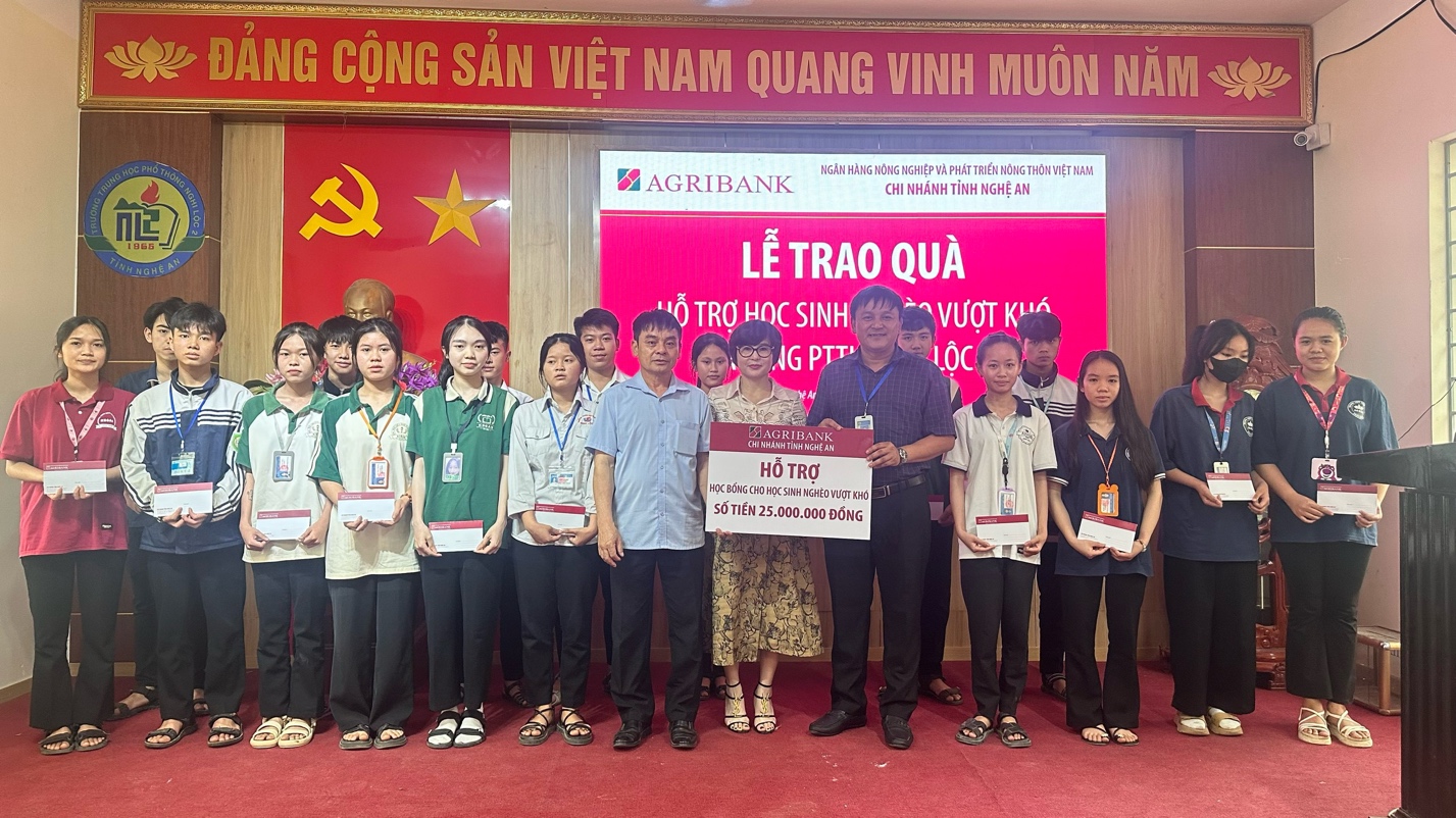 Agribank Chi nhánh Nghệ An trao quà hỗ trợ học sinh nghèo vượt khó tại Trường THPT Nghi Lộc 2