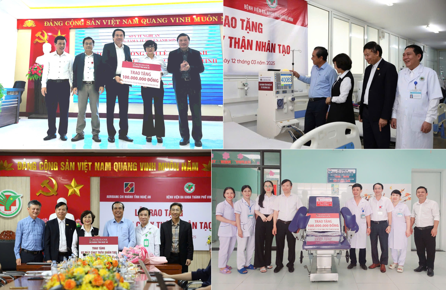 Agribank Chi nhánh Nghệ An cùng đoàn công tác của Chủ tịch UBND tỉnh Nghệ An trao tặng thiết bị y tế cho Trung tâm y tế Anh Sơn; trao tặng máy chạy thận nhân tạo cho Bệnh viện Đa khoa TP Vinh