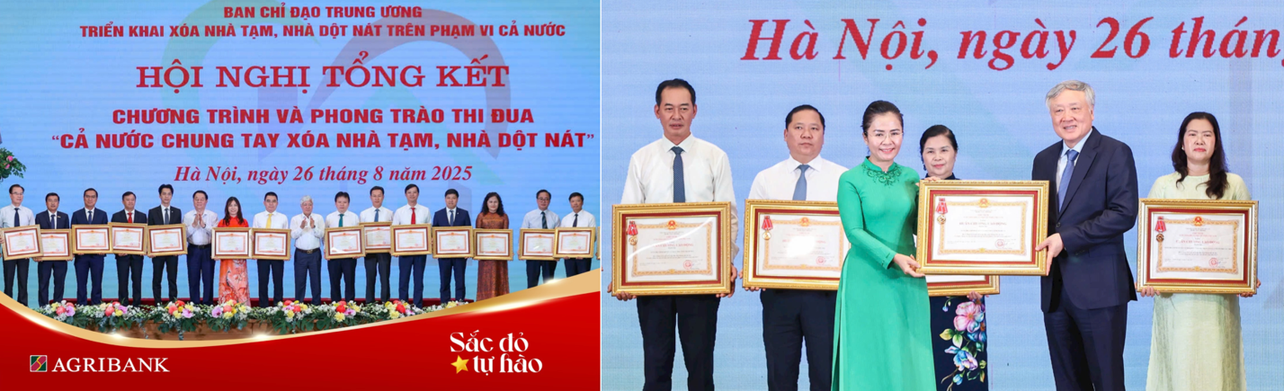Vào ngày 26/8 vừa qua, Agribank đã vinh dự nhận Bằng khen của Thủ tướng Chính phủ và tỉnh Nghệ An được trao tặng Huân chương Lao động hạng Ba về thành tích xuất sắc trong Chương trình và phong trào thi đua “Cả nước chung tay xóa nhà tạm, nhà dột nát”. Đây là một chương trình hết sức ý nghĩa, một “công trình quốc gia đặc biệt” của ý Đảng và lòng dân, nhằm thực hiện Nghị quyết số 42, ngày 24/11/2023 của Ban Chấp hành Trung ương Đảng khóa XIII, đề ra mục tiêu đến năm 2030 “xóa bỏ hoàn toàn tình trạng nhà tạm, nhà dột nát cho hộ nghèo, hộ cận nghèo, người dân bị ảnh hưởng bởi thiên tai, biến đổi khí hậu”; Kết luận số 97, ngày 5/10/2024 của Hội nghị Trung ương 10 (khóa XIII) yêu cầu đẩy mạnh Phong trào thi đua “Chung tay xóa nhà tạm, nhà dột nát trên phạm vi cả nước trong năm 2025”; Chỉ thị số 34, ngày 24/5/2024 của Ban Bí thư yêu cầu “bảo đảm 100% người có công và gia đình người có công với cách mạng được chăm lo tốt về nhà ở”.