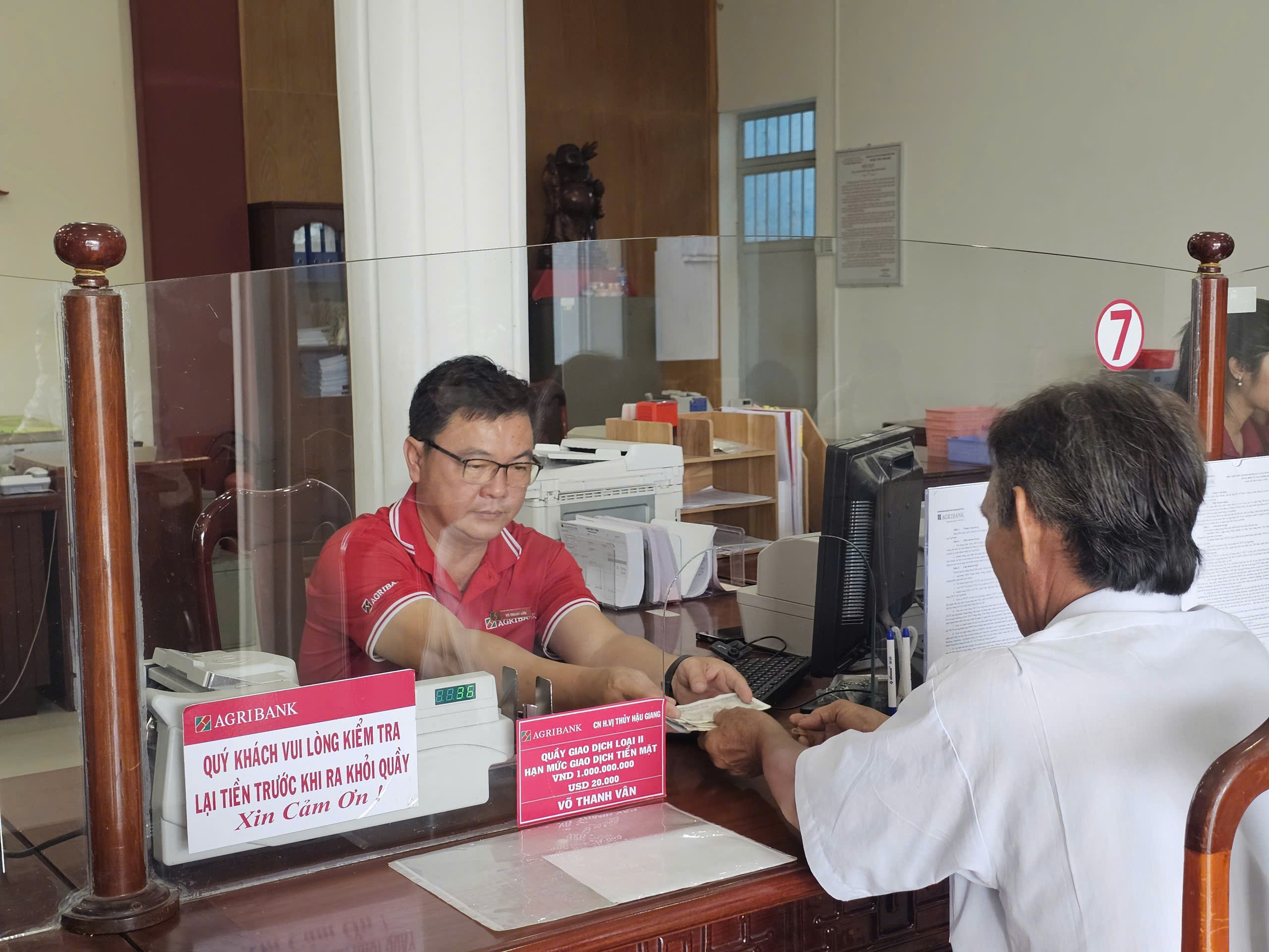 Cán bộ Agribank Hậu Giang giao dịch với khách hàng