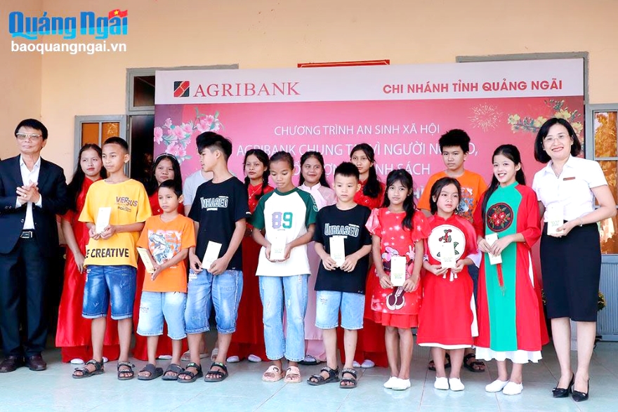 Năm 2023, Agribank Quảng Ngãi dành trên 3,6 tỷ đồng cho chính sách an sinh xã hội. Trong đó, dịp tết Nguyên đán Quý Mão 2023, Agribank Quảng Ngãi đã tặng gần 600 suất quà, trị giá 500 triệu đồng cho các hộ gia đình chính sách, hộ nghèo trên địa bàn tỉnh.