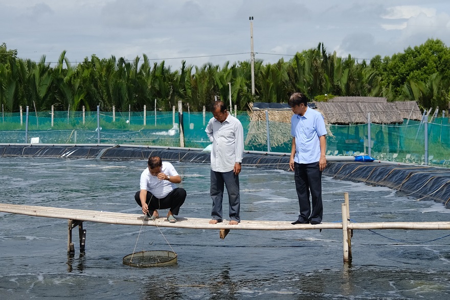 Cán bộ Agribank thăm mô hình của Ông Lê Minh Nguyện ở xã Trường Long Hòa, thị xã Duyên Hải, tỉnh Trà Vinh