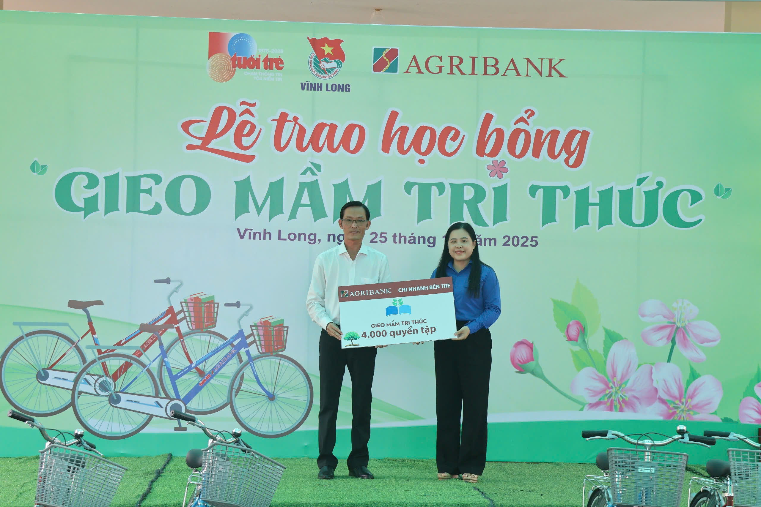 Dịp này, 200 em học sinh có hoàn cảnh khó khăn đạt thành tích khá, giỏi tại xã Bảo Thạnh, tỉnh Vĩnh Long được trao tặng học bổng, mỗi suất trị giá 2 triệu đồng, gồm xe đạp và dụng cụ học tập. Tổng giá trị Chương trình tại tỉnh Vĩnh Long hơn 400 triệu đồng do Agribank Chi nhánh Phú Nhuận tài trợ.