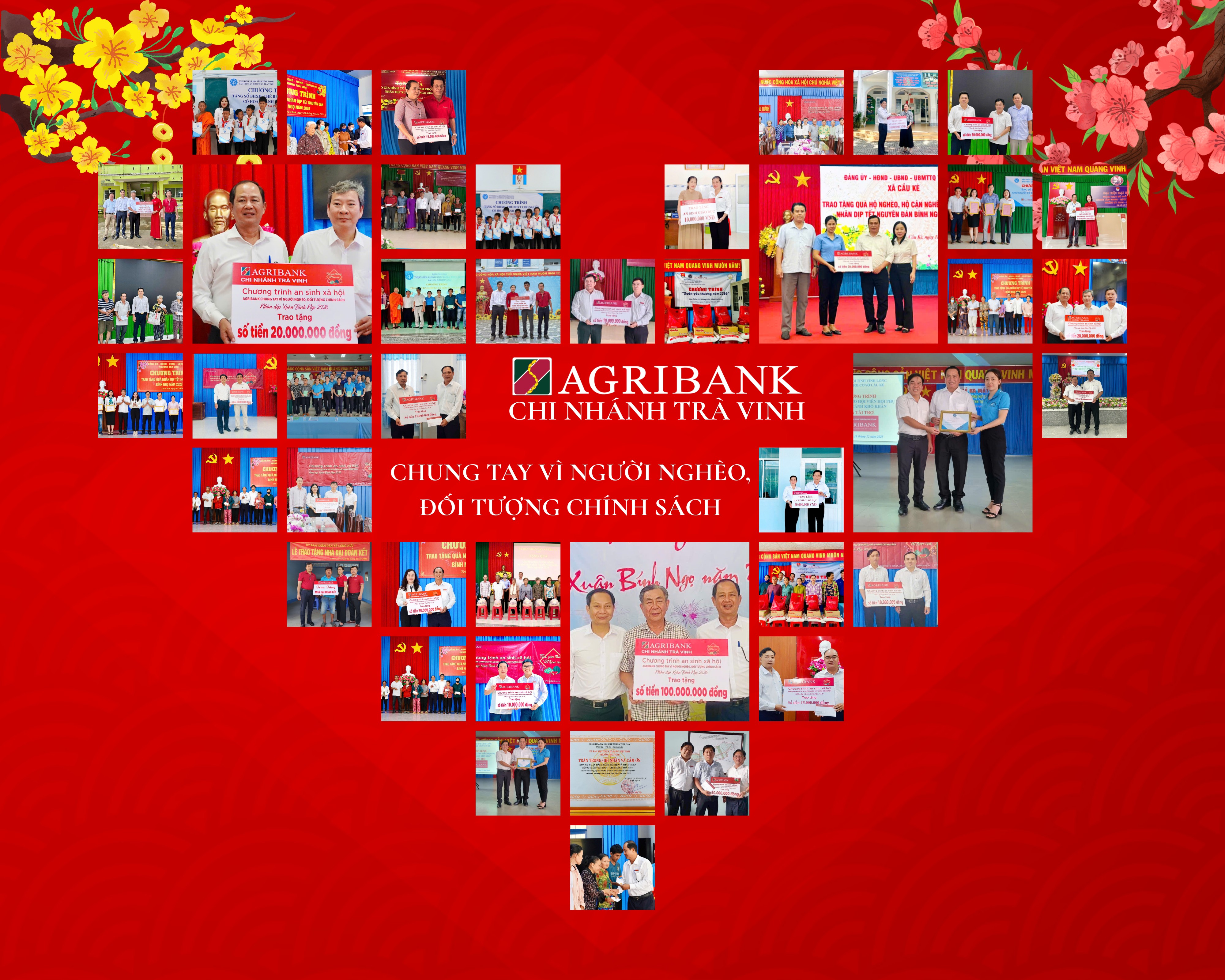 Hưởng ứng phong trào Chung tay vì người nghèo và tiếp tục hành trình sẻ chia “Trao yêu thương – Tết trọn vẹn” nhân dịp Tết Nguyên đán Bính Ngọ 2026, tại các xã, phường trên địa bàn tỉnh Vĩnh Long, thông qua sự phối hợp chặt chẽ với Ủy ban nhân dân và Ủy ban Mặt trận Tổ quốc Việt Nam các cấp, Agribank Chi nhánh Trà Vinh đã triển khai chuỗi hoạt động an sinh xã hội thiết thực, kịp thời, góp phần giúp người dân đón Tết đủ đầy, trọn vẹn hơn.