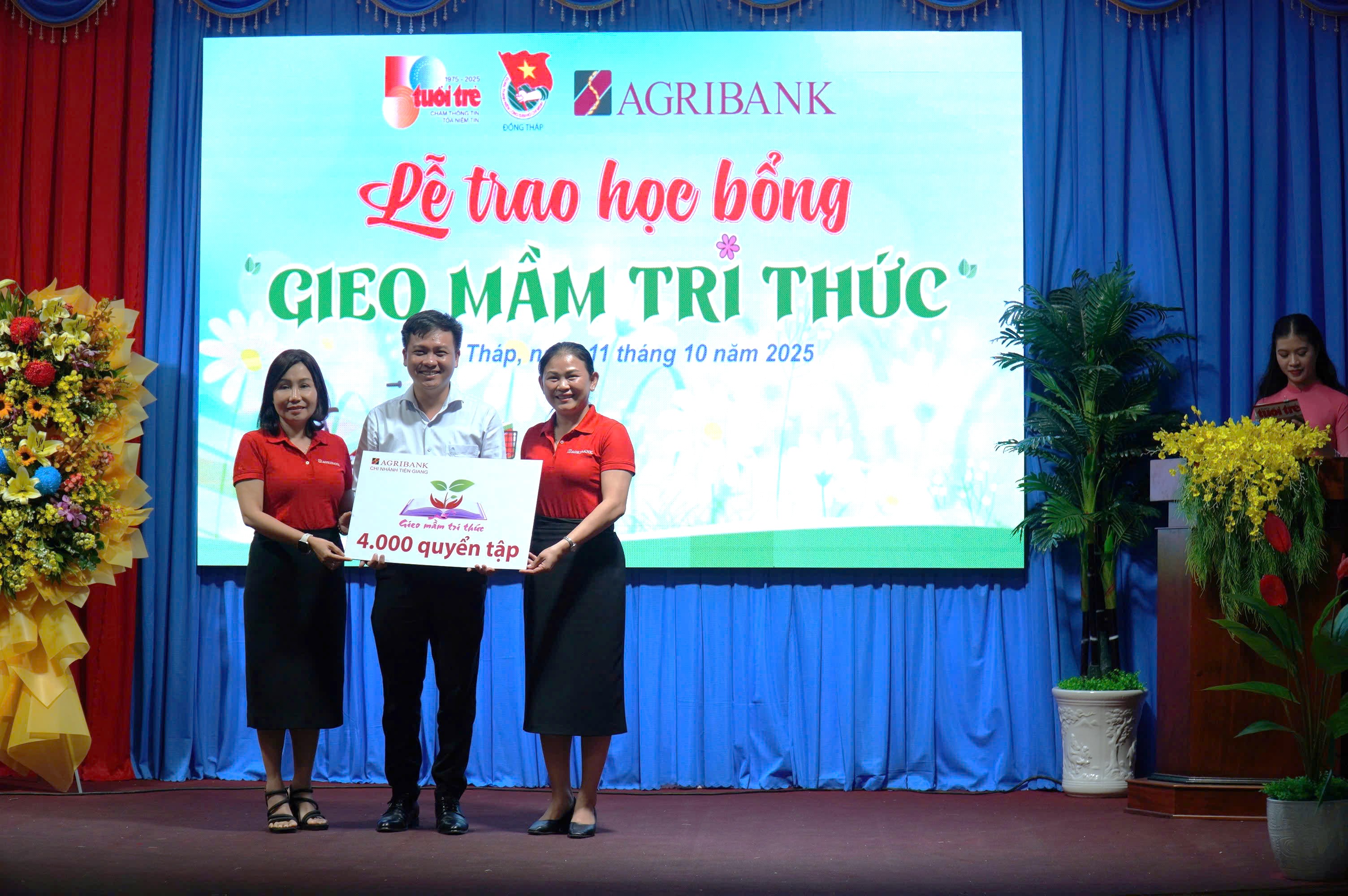 Sáng ngày 11/10/2025, tại Nhà Văn hóa Thiếu nhi phường Long Thuận, tỉnh Đồng Tháp, Agribank chi nhánh Tiền Giang và Agribank chi nhánh Phú Nhuận phối hợp với Tỉnh Đoàn và Hội Khuyến học tỉnh Đồng Tháp cùng Báo Tuổi Trẻ và chính quyền địa phương xã Hiệp Đức, xã Tân Đông và phường Long Thuận tổ chức chương trình “Gieo mầm tri thức” – một hành trình thiện nguyện mang đậm nghĩa tình Agribank, lan tỏa yêu thương đến với học sinh vùng sâu, vùng xa.