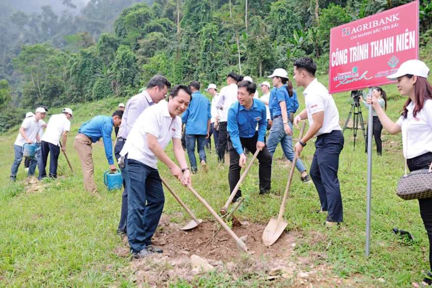 Đến với vùng đất Yên Bái, nơi địa hình có độ dốc lớn, nhiều núi đồi… Agribank đã tích cực tham gia chương trình trồng cây xanh tại địa phương giúp sắc xanh núi đồi thêm xanh thẳm. Cũng trong tháng 5 vừa qua, ngày 16/5/2020, Hội sở Agribank Chi nhánh Bắc Yên Bái phối hợp với Agribank Chi nhánh huyện Văn Yên - Bắc Yên Bái và Huyện đoàn Văn Yên tổ chức chương trình trồng 3.000 cây mận Tam Hoa tại xã Nà Hẩu, huyện Văn Yên, tỉnh Yên Bái; ngày 17 tháng 5 năm 2020 Agribank Chi nhánh huyện Yên Bình - Bắc Yên Bái phối hợp với Huyện đoàn Yên Bình tổ chức chương trình trồng 3.000 cây xanh tại xã Đại Đổng, huyện Yên Bình, tỉnh Yên Bái.