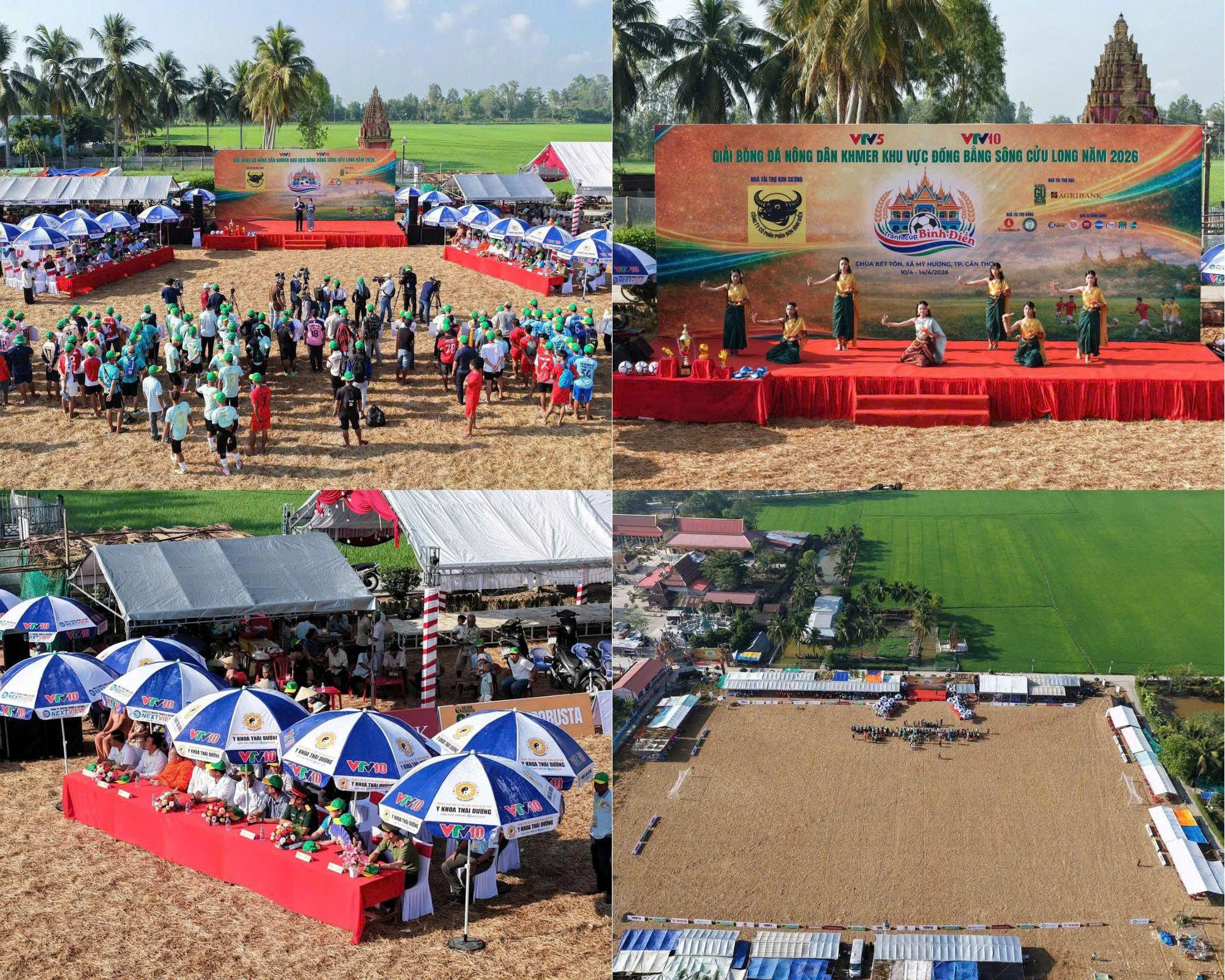 Sáng ngày 10/4/2026, tại chùa Bét Tôn (xã Mỹ Hương, TP. Cần Thơ), Trung tâm Truyền hình Việt Nam khu vực Nam Bộ - Đài Truyền hình Việt Nam đã long trọng tổ chức Lễ khai mạc Giải Bóng đá nông dân Khmer khu vực ĐBSCL năm 2026. Sự kiện diễn ra trong không khí phấn khởi của đồng bào Khmer nhân dịp Tết Chol Chnam Thmay, thu hút đông đảo người dân, phật tử và các vận động viên tham dự.