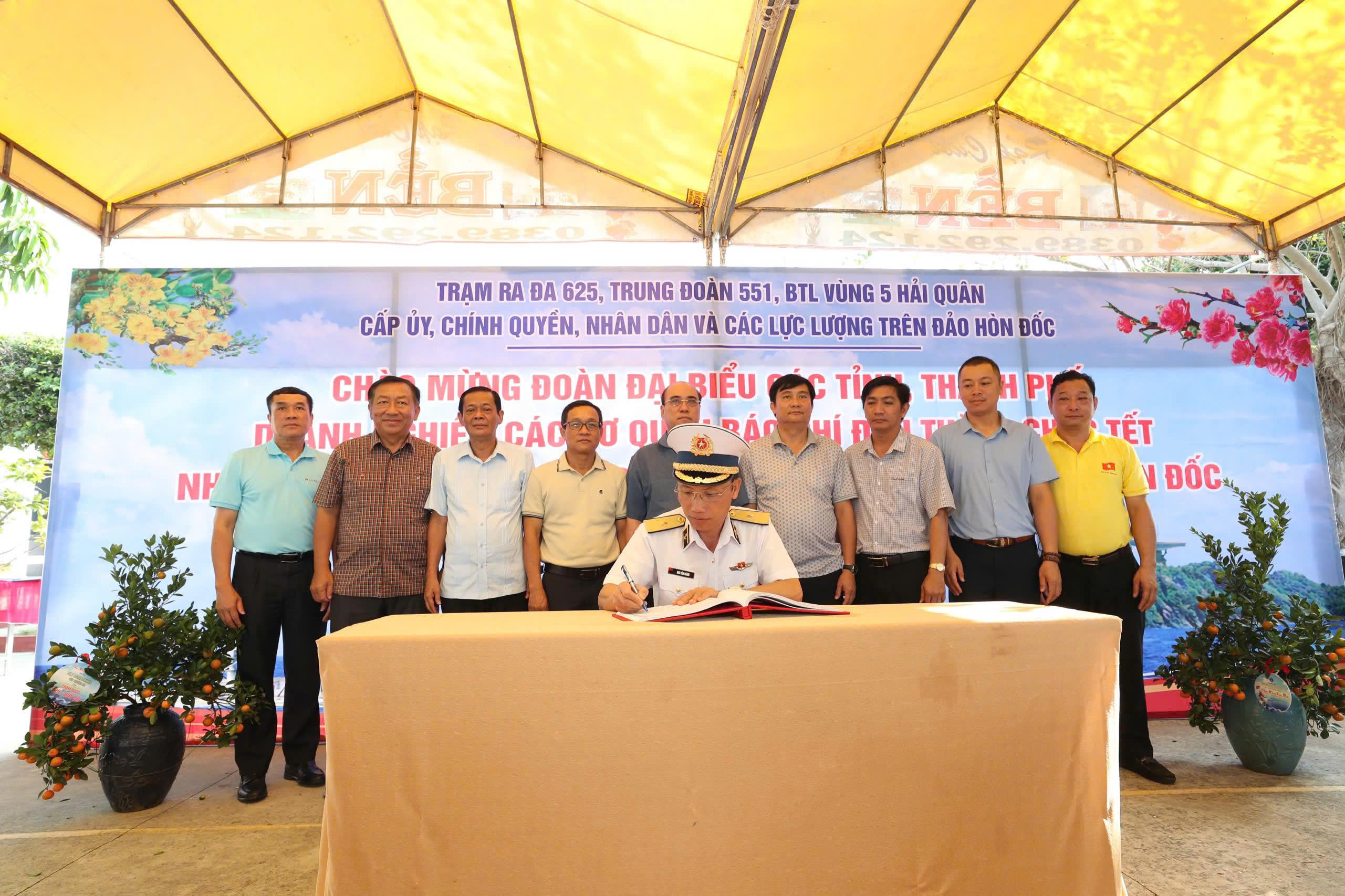 Chuẩn Đô đốc Ngô Văn Thành - Bí thư Đảng ủy, Chính ủy Vùng 5 Hải quân ghi Sổ lưu niệm tại Trạm Ra đa 625, Trung đoàn 551, Bộ Tư lệnh Vùng 5 Hải quân