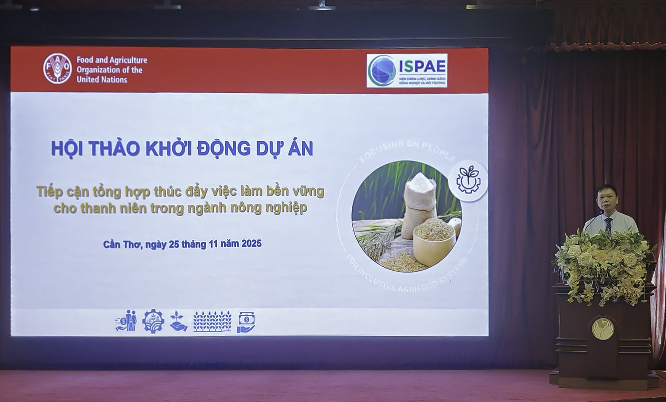 Ngày 25/11/2025, tại TP Cần Thơ, Agribank đã tham dự hội thảo khởi động Dự án “Tiếp cận tổng hợp thúc đẩy việc làm bền vững cho thanh niên trong ngành nông nghiệp” do Viện Chiến lược Chính sách Nông nghiệp và Môi trường - Bộ Nông nghiệp và Môi trường phối hợp với Tổ chức Lương thực và Nông nghiệp Liên Hợp Quốc (FAO) tổ chức. Dự án sẽ được triển khai trong giai đoạn 2025-2027 tại TP Cần Thơ và hai tỉnh An Giang, Cà Mau. Mục tiêu chính của Dự án là tạo ra nhiều cơ hội việc làm hơn và việc làm có chất lượng hơn cho thanh niên trong lĩnh vực nông nghiệp. Đây là một sáng kiến thuộc chương trình Integrated Country Approach (ICA) giai đoạn 4 của FAO, tập trung vào chuỗi giá trị lúa gạo tại Việt Nam (bên cạnh ca cao ở Ecuador và đậu tương ở Zambia).