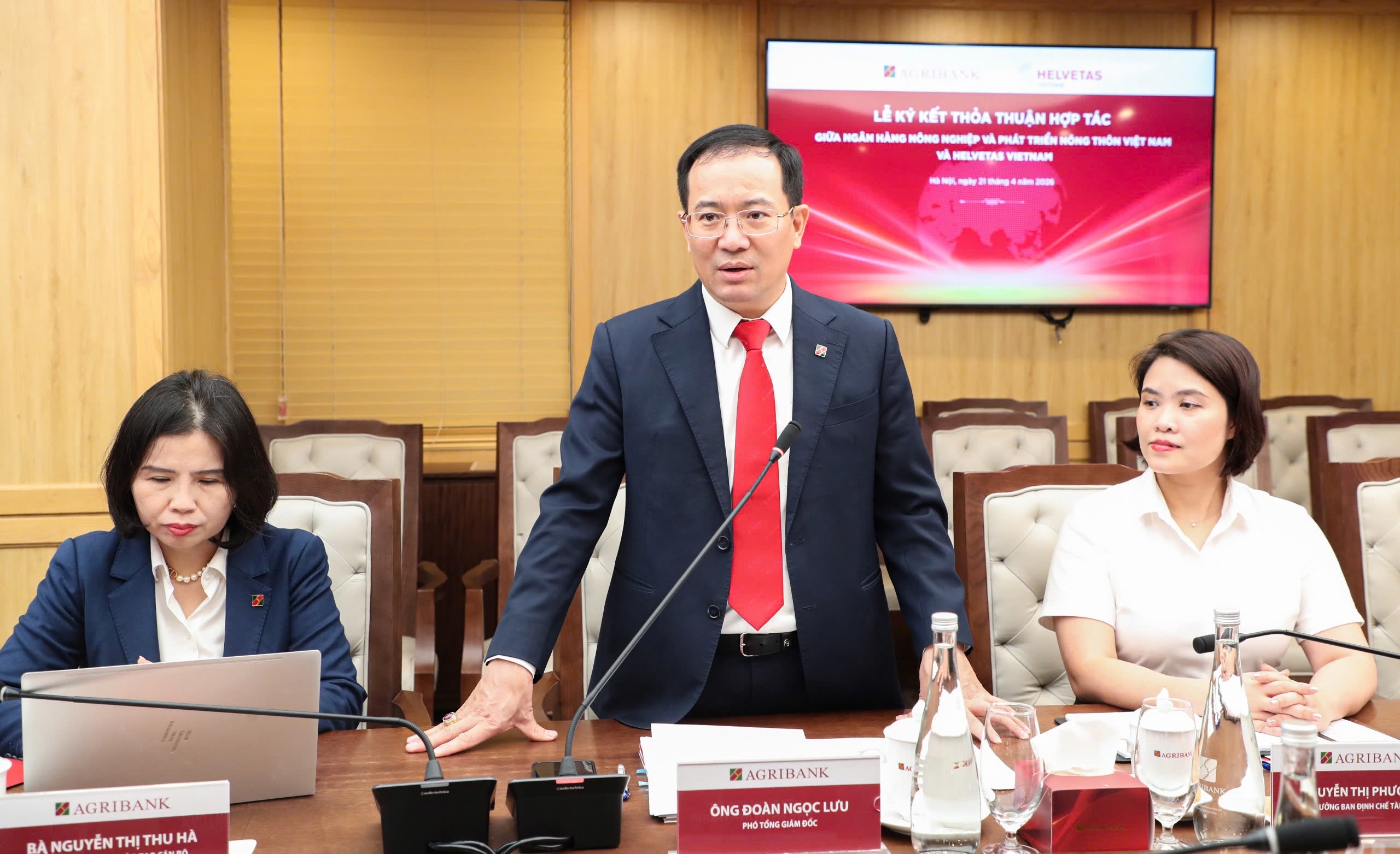 Ngày 21/04/2026, tại Trụ sở chính của Ngân hàng Nông nghiệp và Phát triển nông thôn Việt Nam (Agribank), Agribank đã tổ chức Lễ ký kết Thỏa thuận hợp tác với Helvetas Vietnam, nhằm tăng cường phối hợp trong lĩnh vực hỗ trợ kỹ thuật, thúc đẩy tài chính xanh, phát triển nông nghiệp bền vững và kinh tế tuần hoàn.
