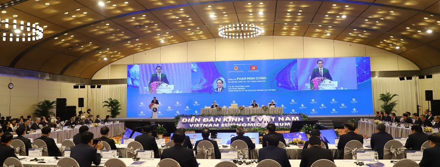 Với chủ đề “Kinh tế Việt Nam 2023: Ổn dịnh kinh tế vĩ mô, bảo đảm các cân đối lớn, vững vàng vượt qua thách thức”, Diễn đàn Kinh tế Việt Nam lần thứ 5 chính thức khai mạc chiều ngày 17/12, tại Hà Nội. Phiên toàn thể cấp cao được diễn ra dưới sự đồng chủ trì của Thủ tướng Chính phủ Phạm Minh Chính, Trưởng ban Kinh tế Trung ương Trần Tuấn Anh và có sự tham gia của đông đảo cộng đồng doanh nghiệp, các ban bộ ngành và chuyên gia kinh tế của cả trong và ngoài nước.