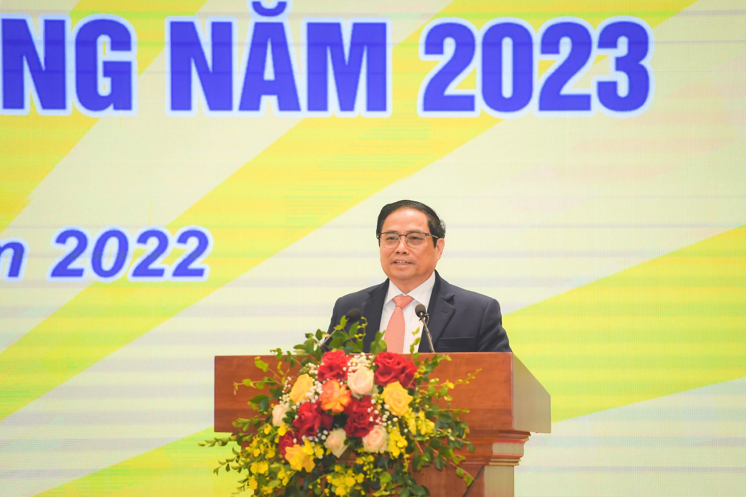 Phát biểu chỉ đạo tại Hội nghị, thay mặt Chính phủ, Thủ tướng Phạm Minh Chính ghi nhận và biểu dương sự nỗ lực, quyết tâm cao, sự phối hợp, quyết liệt triển khai hiệu quả các giải pháp, nhiệm vụ đề ra và kết quả đạt được của ngành ngân hàng trong năm 2022, đóng góp tích cực và quan trọng vào những thành tựu và kết quả khá toàn diện của đất nước.