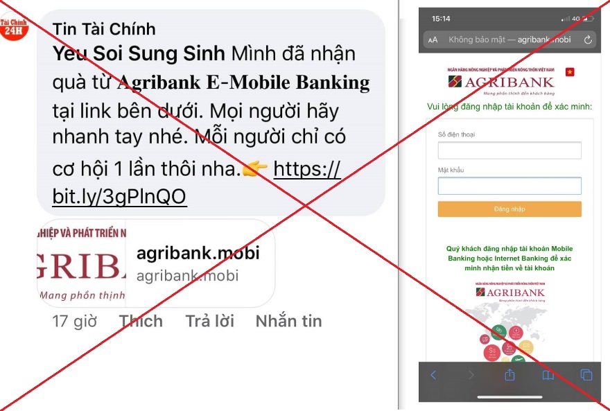 Thủ đoạn này tinh vi ở chỗ, các website được kẻ gian gửi tới cho khách hàng có giao diện tương tự với các website chính thức của các Agribank, khiến người dùng rất khó phân biệt.