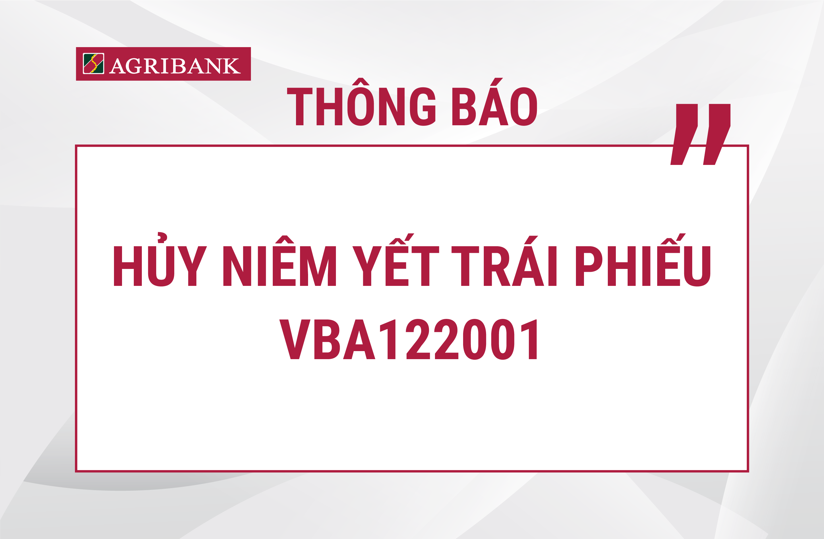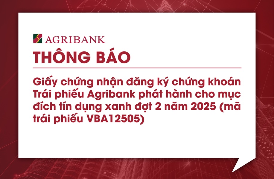 Ngân hàng Nông nghiệp và Phát triển Nông thôn Việt Nam (Agribank) trân trọng thông báo ngày đăng ký cuối cùng để thực hiện quyền trả lãi trái phiếu phát hành riêng lẻ năm 2022.