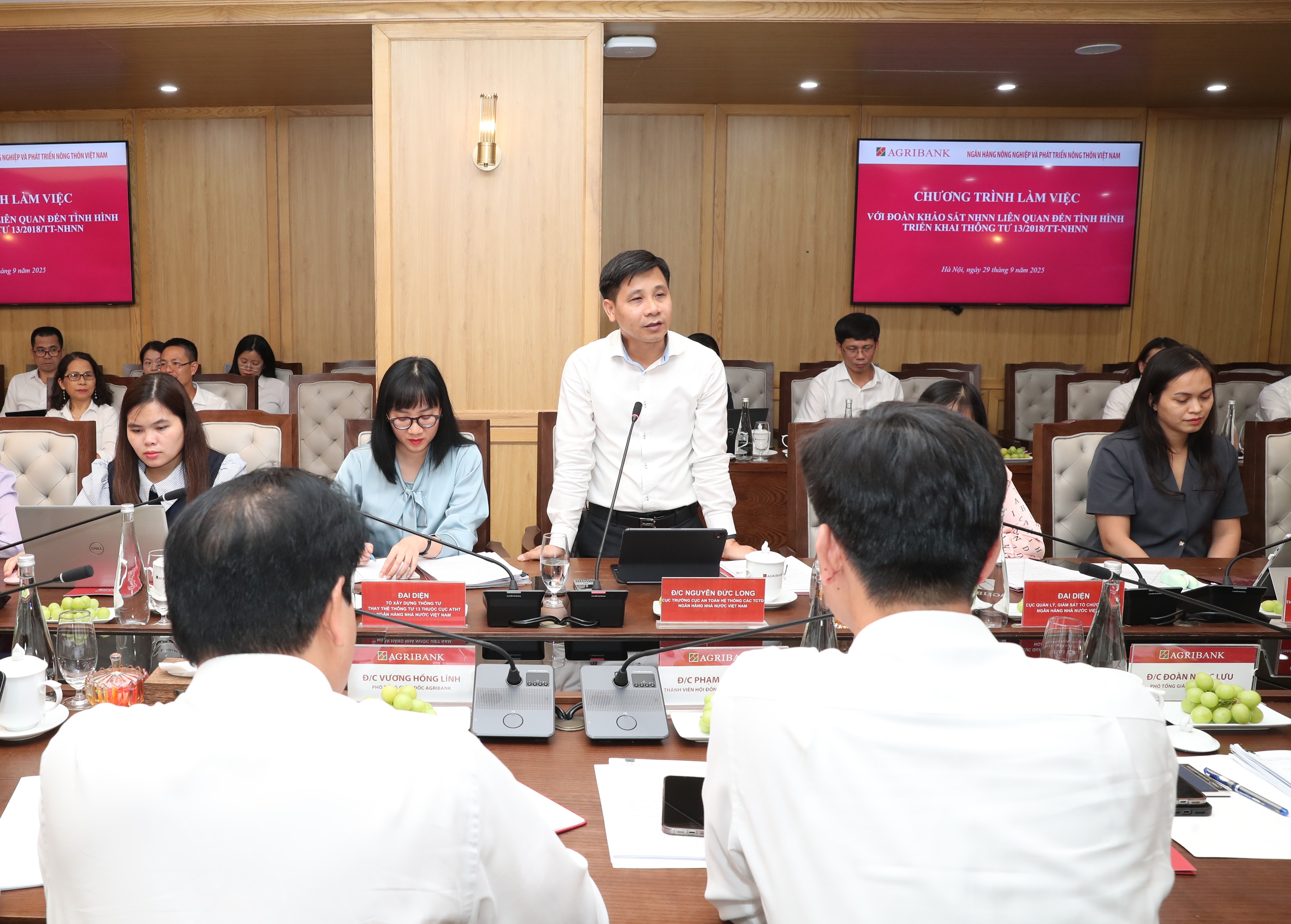 Ngày 29/9/2025, tại Trụ sở chính số 2 Láng Hạ (Hà Nội), Agribank đã tổ chức buổi làm việc với Đoàn khảo sát của Ngân hàng Nhà nước Việt Nam (NHNN) về tình hình triển khai Thông tư 13/2018/TT-NHNN quy định hệ thống kiểm soát nội bộ của các tổ chức tín dụng.