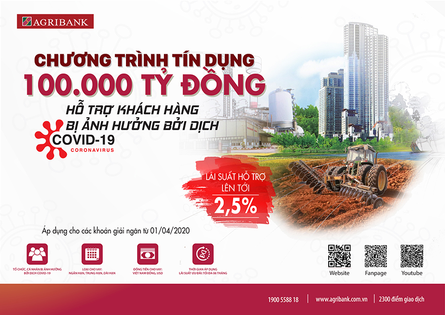 Quyết tâm cùng Chính phủ, Ngân hàng Nhà nước triển khai quyết liệt các giải pháp cấp bách, chung tay vượt qua khó khăn do dịch bệnh kéo dài, Agribank tăng mức hỗ trợ giảm lãi suất đối với chương trình tín dụng 100.000 tỷ đồng từ 1%/năm lên đến 2,5%/năm giúp khách hàng bị ảnh hưởng bởi dịch Covid-19 khắc phục khó khăn, ổn định sản xuất kinh doanh, đảm bảo an sinh xã hội.