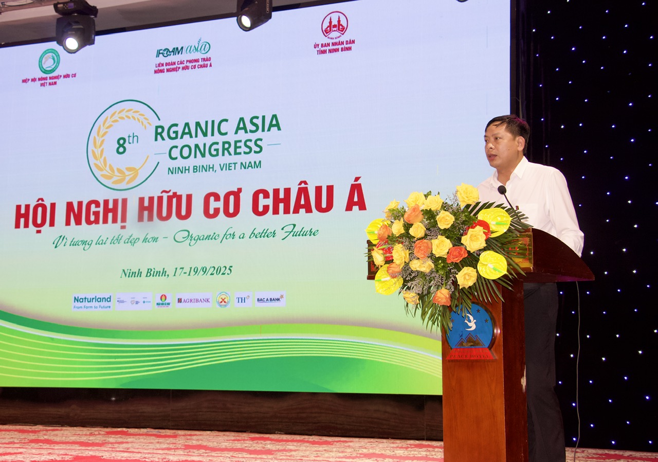 Phát biểu với vai trò đại diện địa phương đăng cai Hội nghị lần thứ 8, ông Trần Anh Dũng, Phó Chủ tịch UBND tỉnh Ninh Bình bày tỏ niềm vinh dự khi Ninh Bình được lựa chọn là nơi tổ chức sự kiện quan trọng này. Ông nhấn mạnh những bước đi thành công ban đầu của tỉnh trong phát triển nông nghiệp hữu cơ, với nhiều mô hình sản xuất chất lượng cao đã được triển khai cho thấy tiềm năng phát triển bền vững. Đồng thời, lãnh đạo tỉnh khẳng định cam kết tiếp tục ban hành các chính sách ưu đãi, tạo điều kiện thuận lợi cho doanh nghiệp và người dân, kêu gọi sự hợp tác, đồng hành của các tổ chức tài chính, ngân hàng nhằm thúc đẩy nông nghiệp hữu cơ phát triển toàn diện.