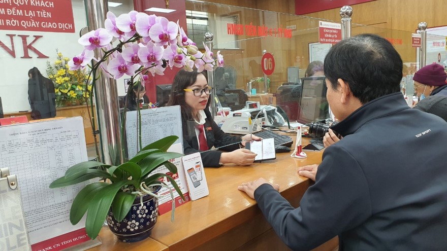 Chị Nguyễn Thị Nhung - cán bộ ngân quỹ - Agribank Chi nhánh tỉnh Bắc Kạn trong phiên giao dịch với khách hàng