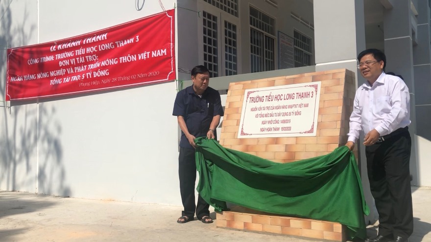 Ngày 28/02 vừa qua, Agribank Hậu Giang tổ chức Lễ khánh thành và bàn giao Trường Tiểu học Long Thạnh 3 (Ấp Long Trường 2, xã Long Thạnh, huyện Phụng Hiệp, tỉnh Hậu Giang). Ngôi trường được xây dựng từ tháng 8/2019 đến nay với tổng diện tích 1.200 m2, bao gồm 7 phòng, 13 lớp học và các thiết bị dạy và học khác. Tổng kinh phí xây dựng là 5 tỷ đồng do Agribank tài trợ.