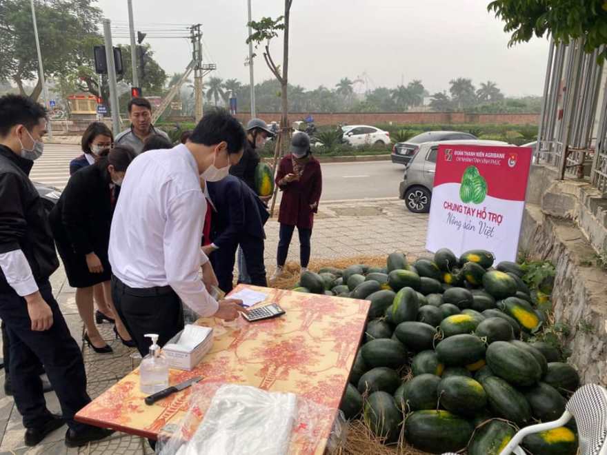 Chưa hết, những cán bộ Agribank Vĩnh Phúc còn thể hiện nghĩa cử cao đẹp với cộng đồng đó là tích cực tham gia hỗ trợ nông sản Việt bằng hành động ý nghĩa: thu mua 10 tấn dưa hấu cho bà con gặp khó khăn trong tiêu thụ nông sản do ảnh hưởng bởi dịch bệnh Covid-19. Dịch bệnh lan rộng, không chỉ sức khỏe của người dân bị ảnh hưởng mà tất cả các mặt của đời sống kinh tế, chính trị, xã hội đều bị ảnh hưởng. Nhiều nông sản Việt đang gặp khó khăn trong bối cảnh Trung Quốc đang hạn chế giao thương do e ngại về sự lây lan của dịch bệnh. Trong “tâm bão” của dịch bệnh Covid-19, những cán bộ Agribank Vĩnh Phúc không chỉ gồng mình vượt khó mà còn chung tay cùng cộng đồng vượt khó, đó thực sự là những nghĩa cử đáng trân trọng.